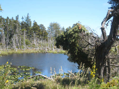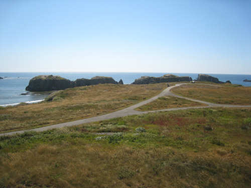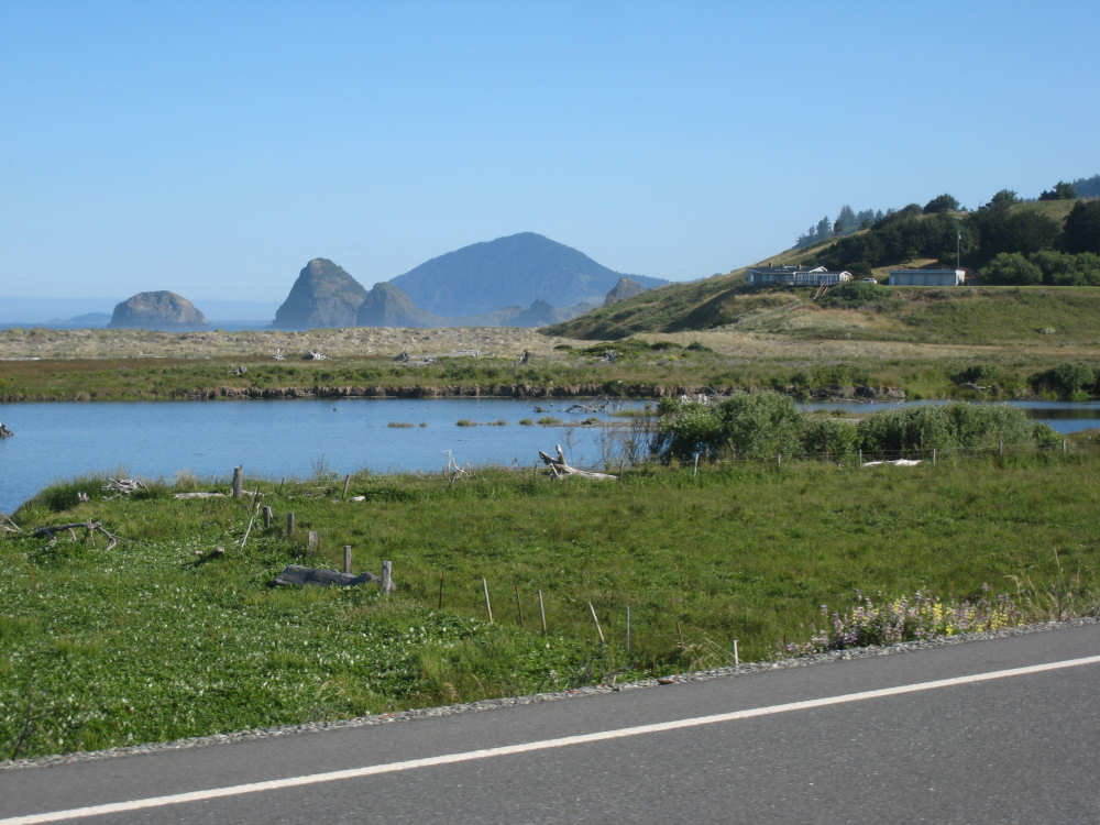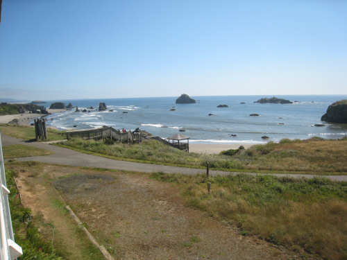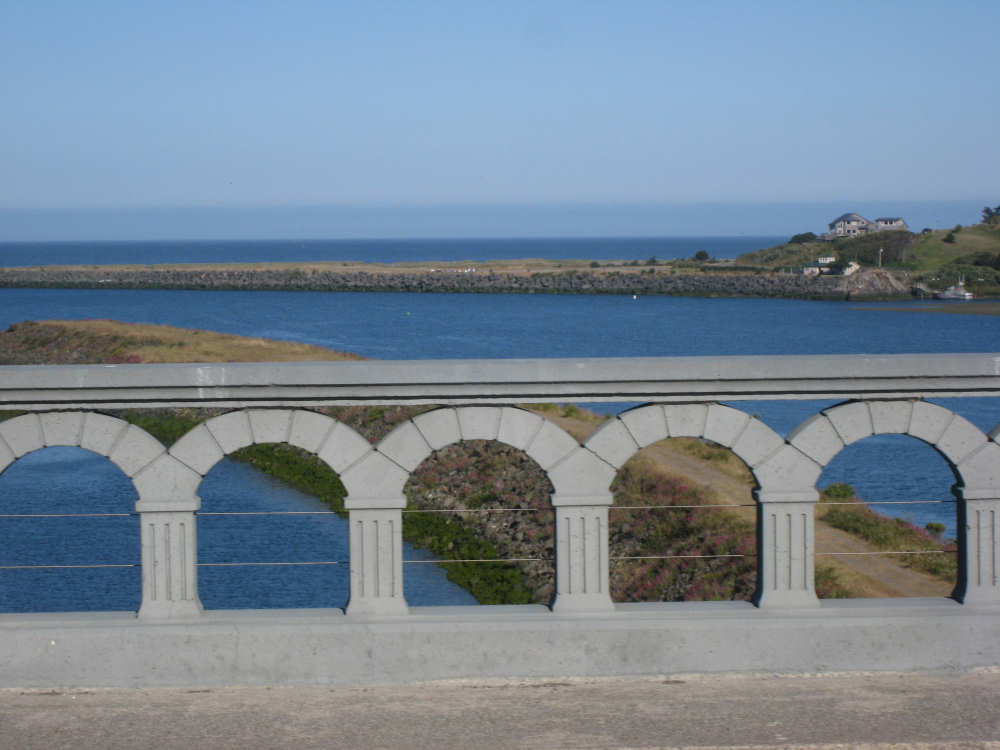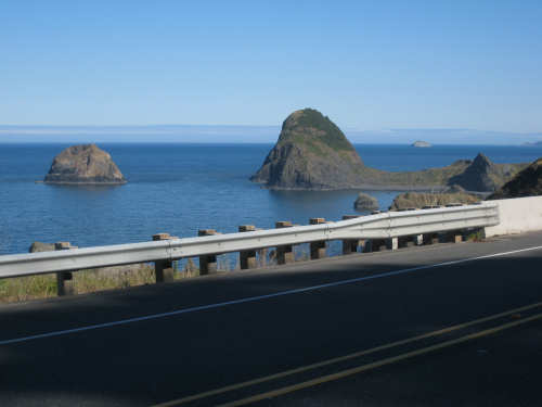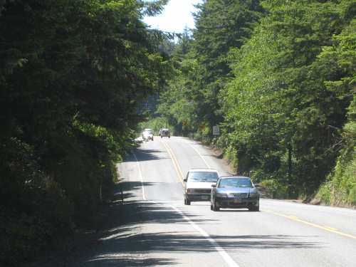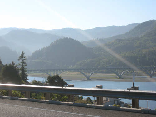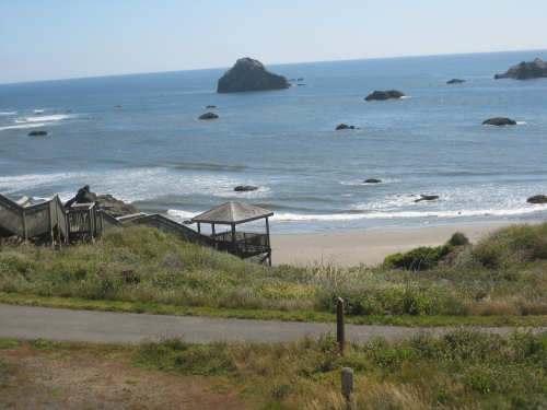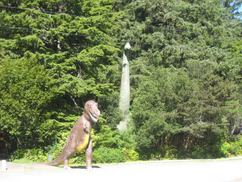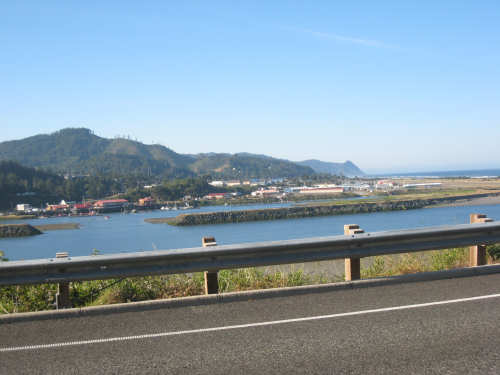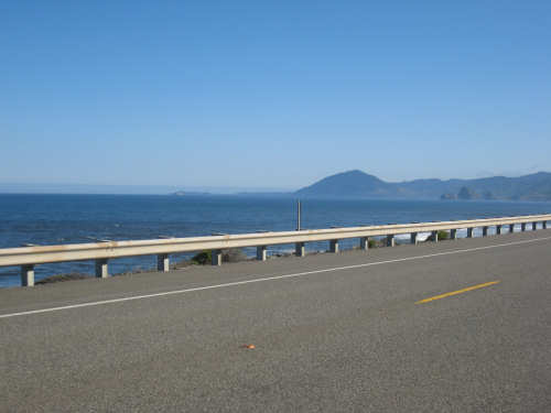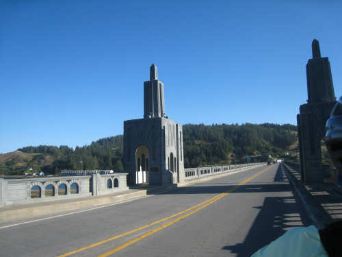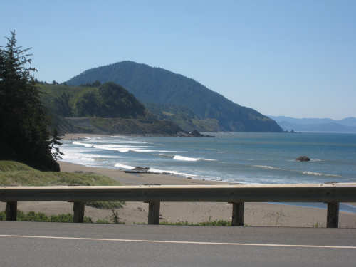 Tuesday, June 17, 2008 Our tummy troubles just about completely over, we finally set out from our motel in Gold Beach this morning a little before 7 am, stopping just a few blocks away at Grant's Restaurant for a great breakfast. Soon after that, we crossed the Rogue River, a large river on which white water rapids tours are made on jet boats. The bridge over the Rogue was beautiful, and offered great views of the river, the ocean, and the town of Gold Beach, just behind us. It was a beautiful, sunny day, just a hint of fog in the trees off in the distance, and the wind was fairly calm still (by local standards, wind that feels pretty blustery to me is "not bad" to them; they tell "car doors that nearly blew off their hinges" stories like we tell of "12 inches of snow that fell in one night"). We were a little worried that it would be a hard day - 55 miles with a lot of climb and us in a weakened condition. However, the road was pretty much up and down all day, with a couple of longer climbs in the morning, but none of them were very steep or long and the ride went pretty easily. We stayed on 101 most of the day, until we turned off onto Beach Loop Road near Bandon, our night's destination, so the navigation was easy, too. It was typical Oregon scenery, rugged ocean coasts, lots of wooded hills, a bunch of rivers and creeks. We passed very few towns, most of them small, with one town, Port Orford, conveniently located at midpoint. It was a largish town with a few places to eat and we found a nice cafe with good food and cheap prices. Just before Port Orford, we passed a little cove and saw lots of cars lined up along the road with people getting in or out of wet suits and carrying surf boards. The waves didn't look nearly big enough for surfing, but we saw a couple of people manage to catch a few rides. Another point of interest in the morning was a "prehistoric garden" museum and gift shop, which featured 2 fine specimens from prehistoric times out in front. We went past Humbug Mountain, a 1,750-footer right off the coast that featured walking trails. Brush Creek, a pretty little stream, ran alongside us for a while near the mountain - I tried to get a picture of it but it came out blurry. The afternoon went pretty quietly. We passed 3 more small towns, the third one - Langlois - being the smallest (population 50!) but having the most to offer - a market, cafe, art galleries and gift shops, quite an artsy little town. There were lots of other gift shops along 101 as we got closer to Bandon, most offering wood carvings and artifacts, but one glass blowing place and others featuring other crafts and homemade goods. Some of the land here was pasture and farm fields; it was also boggy or marshy in places and there seemed to be cranberries grown here. We passed some fields that were bermed around the edges, as if they typically were flooded like the fields we saw in Texas and Arizona. We couldn't tell if they grew cranberries, or rice, or what. We turned off onto Beach Loop Road and rode for another 4 miles before we got into the town of Bandon and found our motel. It turned out that the owner had fallen ill today and Mrs. Gorman, the owner of a nearby motel was looking after things. She clearly thought her place was better, though, and since it was easier to manage one place rather than two, she invited us to go over and take a room at her place. It is certainly a nice room, with an ocean view and everything, and she gave it to us at the same price we had been quoted. We arrived to find another group of bikers settling in there - 8 on bikes and 6 spouses riding support cars. They were riding from Canada down to Crescent City and they highly touted the idea of using support cars. We tried to talk one of the women into riding a support car for us when they were done their trip, but I don't think she really went for it. We're still open to offers! Tomorrow we'll ride across Coos Bay and along several miles of the Oregon Dunes National Recreation Area, a long stretch of coast covered by sand dunes. We ended today at 56 miles in a little under 6 hours of bike time, a pretty respectable average. Reached another bike milestone today - 14,000 on our total bike mileage. We still have a few days until we reach 5,000 miles on our trip. We started the trip with a bit over 9,000 miles on the bike. |