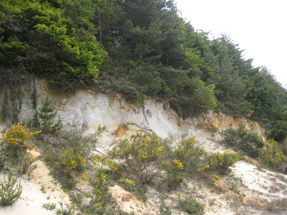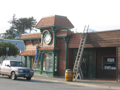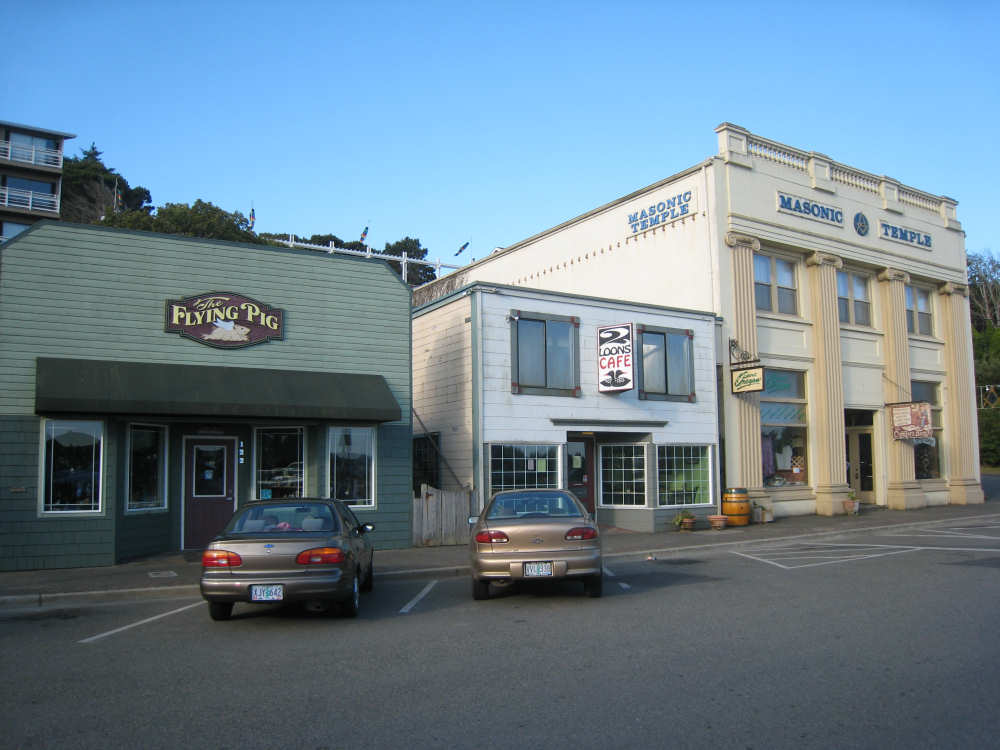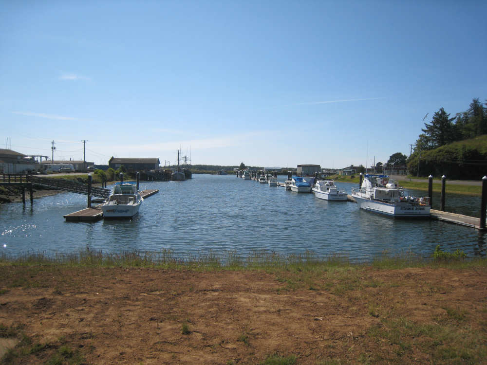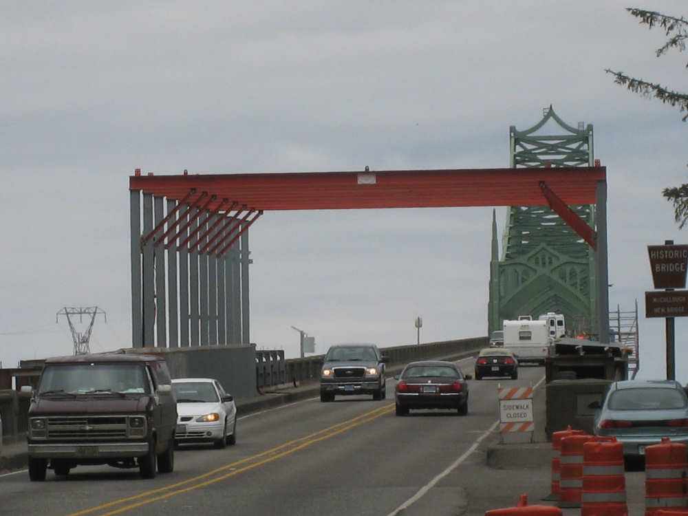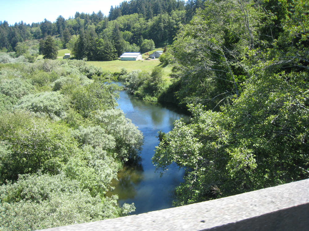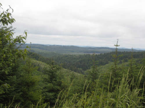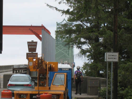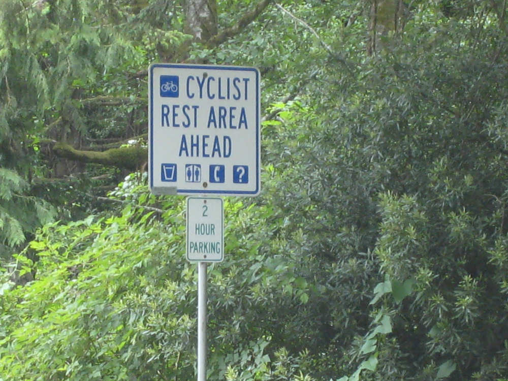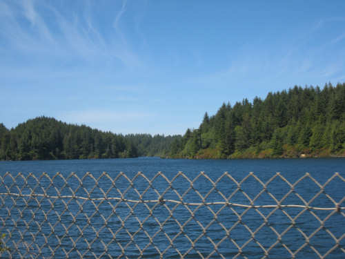 Wednesday, June 18, 2008 We left our motel in Bandon this morning at about 7. It was chilly and cloudy but not very windy. We wandered through the streets toward 101, looking for a breakfast place; a gas station owner told us to head into the Old Town area where we would find a cafe, which we did. The cafe was busy, lots of locals who were interesting to listen to, as well as several tourists. The Old Town was done up in historic style - very cute and artsy. We headed out on 101 for a short ways, but then turned off onto a back road which we would be following for the next 20 miles or so to Charleston, next to Coos Bay. We have gotten pretty paranoid about going on Adventure Cycling-recommended back roads by now, but this one seemed more direct and maybe a little less hilly than 101, so we gave it a try. It wasn't bad, a little rough and narrow, but almost no traffic (except for one stretch that was wider, smoother, and also had more traffic). It was a little hillier than we thought, but nothing major, just a lot of ups and downs. It was also very scenic - lots of wooded hills and deep rolling ravines. There were a few houses here and there and some clear-cut areas that looked quite sad, but otherwise it was beautifully lush and majestic. The highlight of our morning, besides the scenery, was running into 2 sets of bicyclists at the same point on one of these back roads. We had just come up a rise and saw 2 bikes coming up from the other side. We had stopped to take a picture a little ways down from the top and noticed that they were stopping at the top. We biked up the rest of the way and said hello. They were two spry older gents who were out for a ride; the hill they had just come up was a good deal steeper on their side than on ours, so they had stopped for a rest. As we were talking, a second couple of guys came up the hill and stopped to talk, too. They were intrigued by our tandem and our crazy load, not to mention our crazy itinerary. They told us a little about the Coos Bay bridge we would be crossing today and that we had been told we had to walk across; they mentioned that the sidewalk was very narrow, which I didn't like the sound of. After many more ups and downs, we finally came into the town of Charleston, on the Coos Bay, and stopped for lunch. The restaurant had a nice view of the mud flats beside the bay, on which several people were out digging for clams. Our waitress and a few other locals asked about our trip and wished us luck - seemed like a very friendly town. Then we set off for the bridge. The first thing we noticed, besides how big and beautiful it was, was that there was a lot of construction on our side of the bridge. The sidewalk, on which we were presumably supposed to walk, was closed and there wasn't any sign saying we had to walk across. Pat decided the road was wide enough for traffic to get by us, so we headed across (with much trepidation on my part). It was very narrow and cars backed up behind us when there was traffic passing the other way, passing us only when the other lane was clear. There was a fair amount of traffic going both ways. I was busy trying to get pictures while pedaling as fast as I could so we could get over the bridge, but we finally got busted. A loud voice over a bullhorn told us to go to the other side of the bridge and get on the sidewalk there - not an easy thing to do since the sidewalk curb was very high. But we managed and proceeded to walk across the rest of the bridge. There wasn't a lot of room for me to stand in between my handlebars and the panniers in back, and the sidewalk was very narrow as our fellow bikers had said, so once we got over to the downhill side, Pat walked the bike himself and I followed behind making sure it didn't fall over on him. We were relieved to get to the other side. The bridge itself was truely stunning, though. It was a historic bridge under renovation; one of the things they were doing was cleaning the sides of the bridge and the part they had finished was a beautiful white stone, compared to the gray color on the rest of the bridge stone work. The rest of the day was fairly non-eventful. We crossed over the Haynes Inlet next to the Bay and came into the Oregon Dunes National Recreation Area where there are miles and miles of huge sand dunes along the ocean. The sand seemed to swallow up the trees around the dunes in places, and at one point a very tall dune came right up to the road - a very tenuous-looking situation! There were several lakes and creeks along the road as well and it was all very scenic. The sun had finally just begun to come out so it felt a little warmer, but was still pretty cool. The traffic along 101 at this point was fairly heavy which made the afternoon less pleasant than it might have been. We came to the turn-off for Winchester Bay, our evening's destination after passing a large and beautiful lake, aptly called Clear Lake. Winchester Bay is a small fishing town next to the large Umpqua River. We reached our motel about 4 pm after riding a little over 52 miles in a little under 6 hours of bike time, not as good as yesterday, but not bad considering we had about a mile of walking across the bridge. |