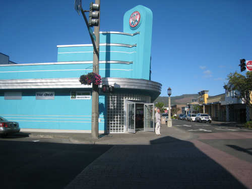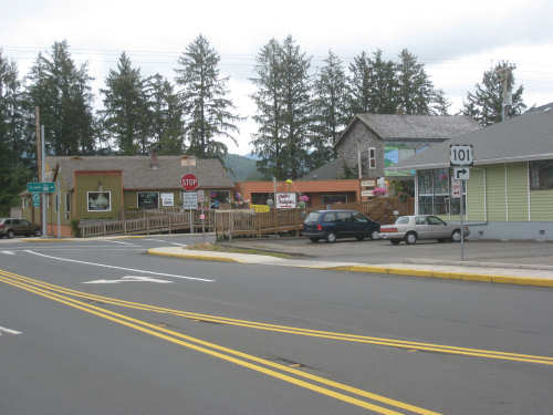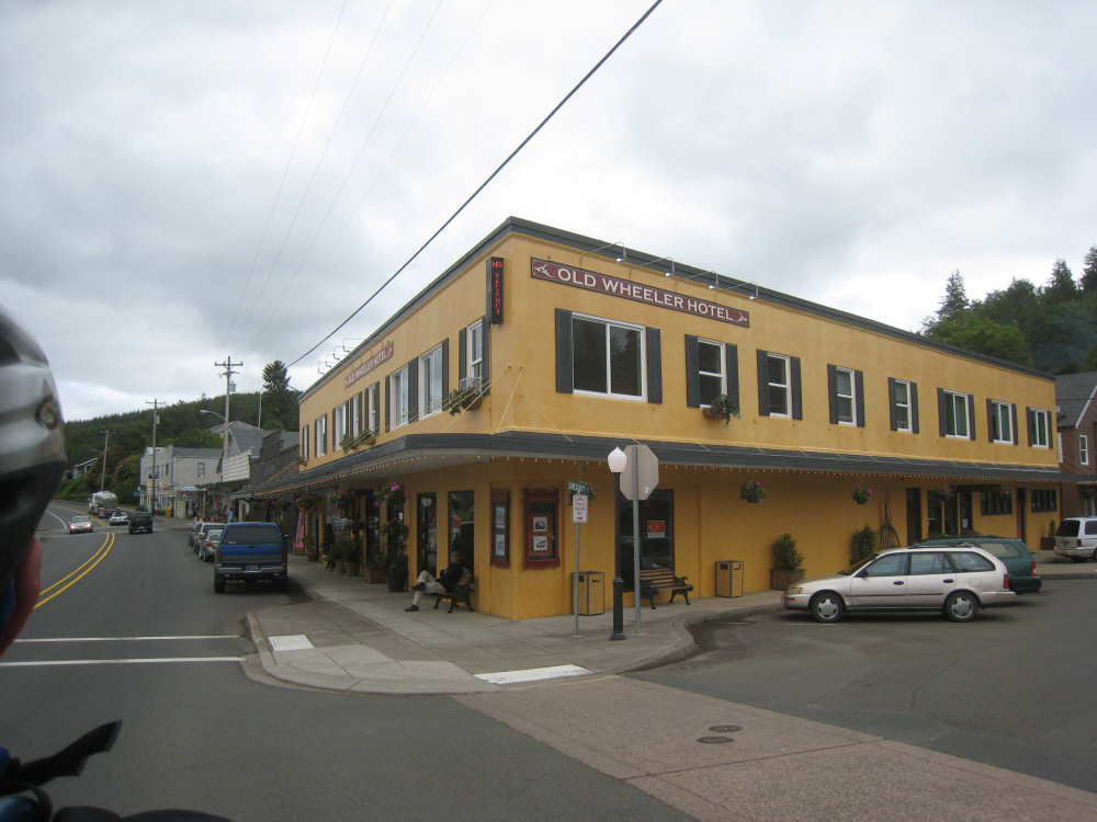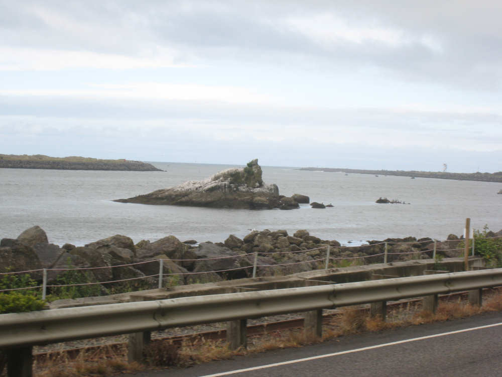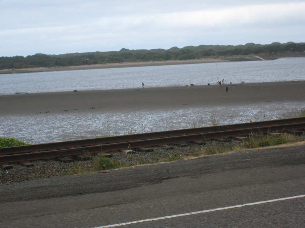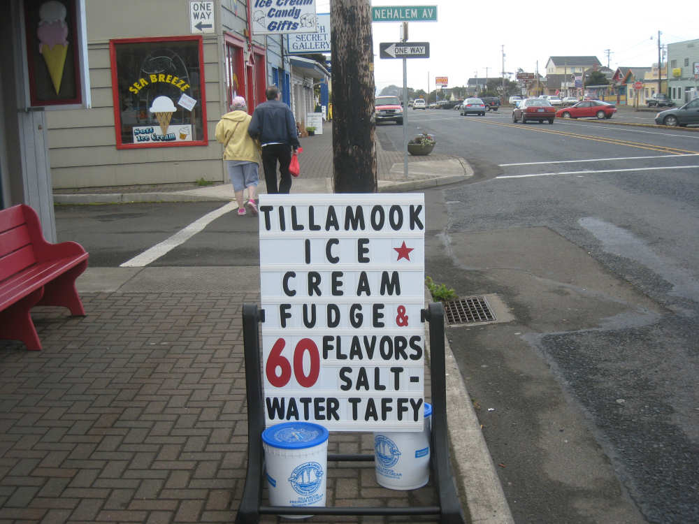 Our route took us past the huge Tillamook Bay, which at low tide had enormous mud flats as well as a lovely water-filled area. Like yesterday, we went through several small towns that were part fishing villages, part resort/vacation towns. One such town, Garibaldi, we could see at one side of the bay, but we had to go about 4 miles around one tip of the bay, formed by the mouth of the Miami River, to get to it. It was a charming town, with a maritime museum and a statue of Captain Robert Gray, who discovered the Columbia River in 1792. We left Tillamook Bay and came out to the ocean for a bit, going through another charming town, Rockaway. We stopped for some Tillamook Ice Cream and marveled at the 60 flavors of salt water taffy they had. When we got to Seaside, though, we saw a place that claimed 170 flavors! Then we swung back eastward to go around another large bay, the Nehalem. The little town of Wheeler was along this bay. We were nearly past the Nehalem Bay when we came to the town of Manzanita, where we stopped for lunch. We had come about 27 miles and had just begun climbing the first hill.