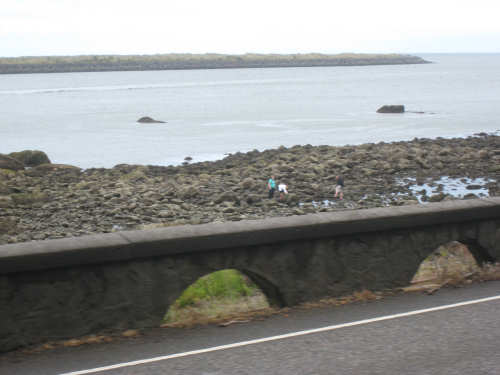 People on the rocks near the mouth of the bay (ocean at the opening to the right)