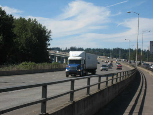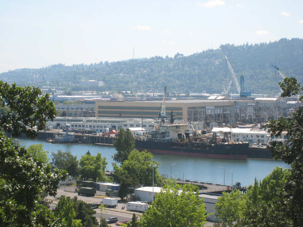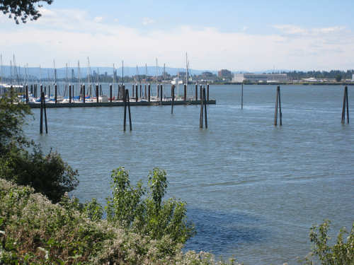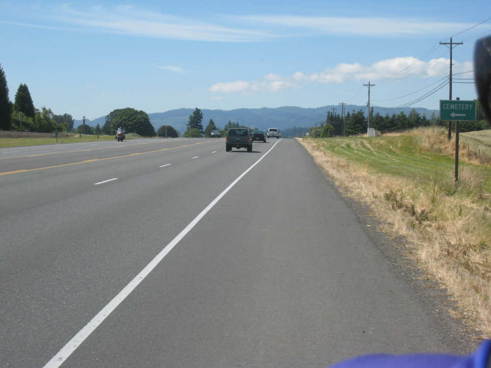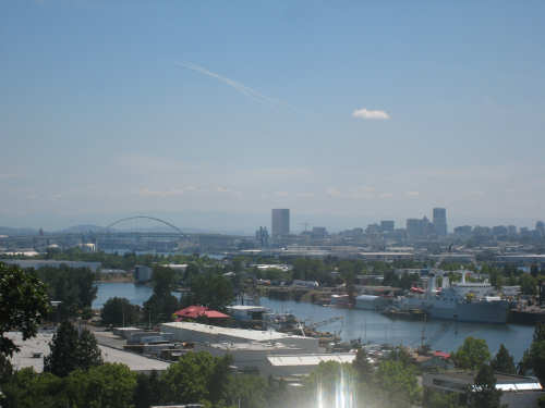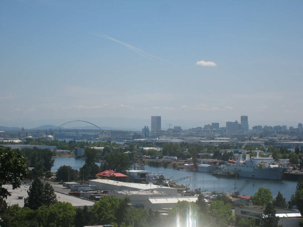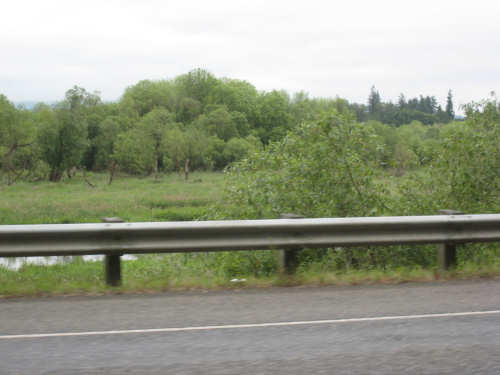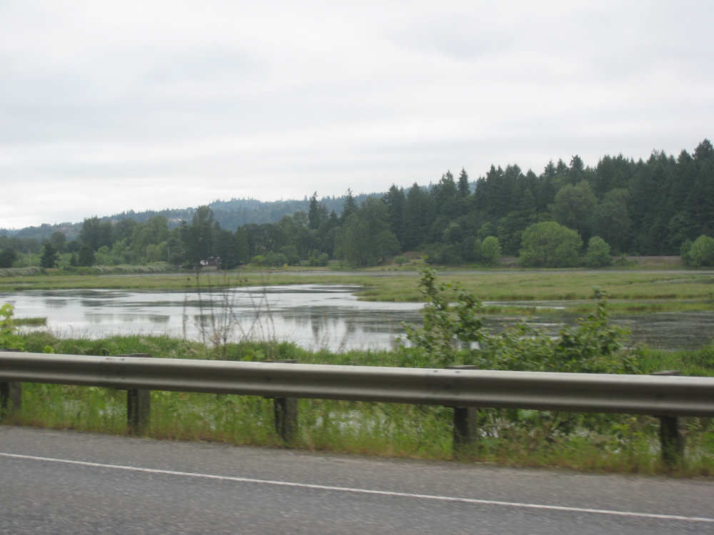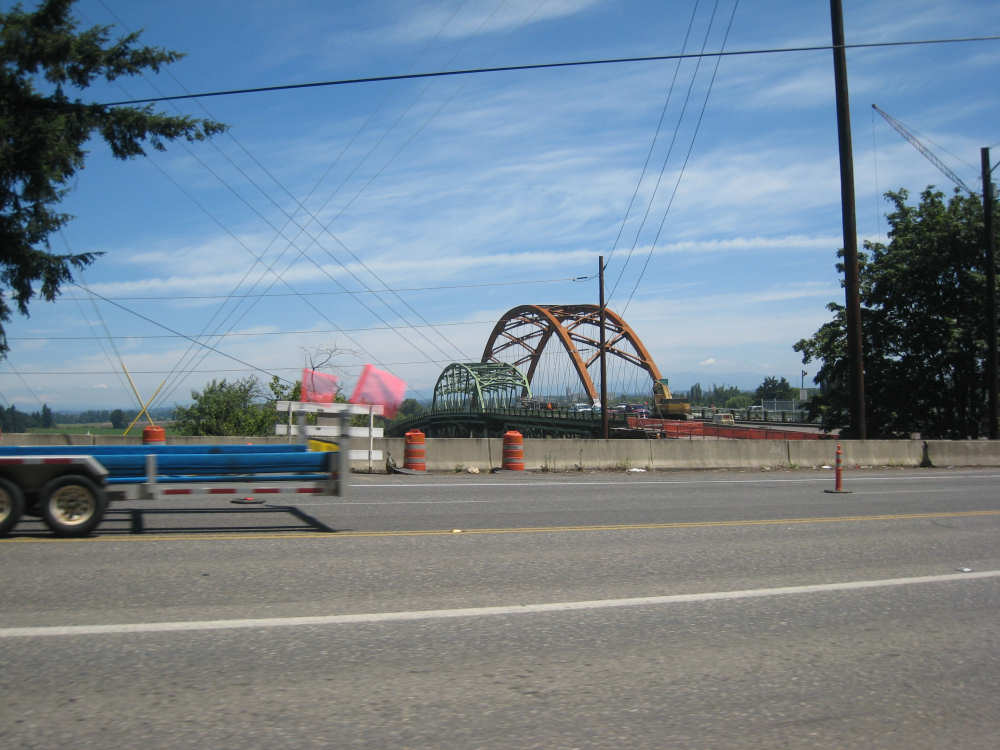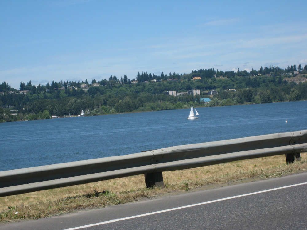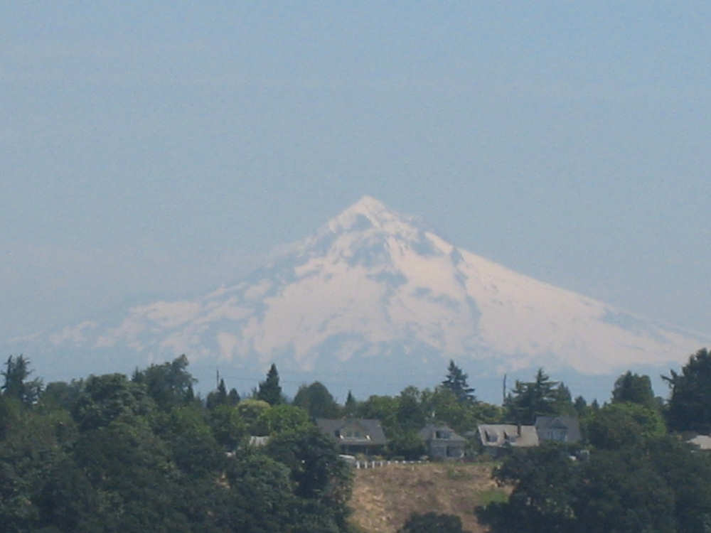 Wednesday, June 25, 2008 Yep, today started out chilly and cloudy, but it cleared up again mid-morning and became quite warm by mid-afternoon. We didn't see any temperature readings then, but it felt like high 80's by the time we ended the day. We left Longview around 7:30, having had breakfast at a place right next to our motel, and headed back over that really high bridge back into Oregon. The traffic was fairly light this morning so it didn't rattle nearly as much, thankfully. There were huge stacks of logs on the Washington side of the river, maybe even more so than the Oregon side. We followed the Columbia again today, not close enough to see a lot of the time. We did see marshes and valleys and lots of forests, though. At one point, we startled a blue heron who flew off a little ways and settled back down again in the high grasses. We stopped to see if I could get a photo without scaring him off and I did manage to get one before his mate came squawking over and the two of them flew off. Unfortunately, I didn't get one of the two of them in flight. We passed through a few small towns again today, stopping to eat lunch at one of them. Pat noticed the front tire was soft and we kept riding until we got to the next town, St. Helens, thinking we'd find a good place to sit and change it. What we found was a bike shop and Pat decided it would be nice to let someone else fix it so we went in. After a long struggle (our Kevlar tires are hard to get on and off), we had a new inner tube on and we stopped next door at a Chicago-style sandwich shop for lunch. This was the second time Pat let someone else change a tire for him, the last time being in Tempe, AZ when we had to get a new rim for the front tire, and this time ended the same as the last one - after another 30 miles or so, the tire blew and he had to change it again. We had a long day today, 68 miles, the longest we've done in a while. The route was mostly quite flat so it went fairly quickly and uneventfully. We approached Portland after about 48 miles and meandered through its residential streets for about 10 more miles, passing a bit of the University of Portland. We began to see glimpses of snow-covered Mount Hood in the distance; it looked quite ethereal, a large white peak hovering against a pale blue sky. We had to go across the St. John's bridge across the Willamette River, an offshoot of the Columbia, to get into Portland. The bridge was a beautiful old bridge, designed by the same person who designed the Golden Gate, we found out later. The road to the bridge and the bridge itself were both quite narrow and had lots of traffic, including a fair number of trucks. The bridge, at least, had two lanes each way but no shoulder, so we had to take up a whole lane. Luckily, it was pretty short. From there, we worked our way back over to the Columbia River and had an early dinner at a place on the river. Then we headed along the river to 205, getting much better views of Mount Hood as well as the Portland airport, which we went right by. After some difficulty, we found our way onto the bike path for 205. It turned out to be a lane in-between the north- and south-bound lanes of traffic. We were glad to be out of the traffic, because at this point it was rush hour and there were lots of cars zooming both ways between Portland and Vancouver, on the Washington side. The bridge was low on the water (which I liked) but tended uphill towards Washington, the most climb we'd had all day. It was a long bridge, about 2 miles, and crossed an island midway. This bike path is where our tire went, so at least we were out of traffic when we had to change it. We had a little difficulty finding our way around after we reached the Washington side, but we managed to find Dick and Dorothy's home after a bit, arriving around 6 pm. Dorothy had some delicious home-made strawberry cheesecake waiting for us, just the thing after a long, hot day of riding. We quickly felt at home and had a nice chat with the two of them over cheesecake and coffee. Then we set to work on our website and went to bed. We finished the day at 68 miles in 6-1/4 bike hours, a good average considering how long a day it was. Tomorrow, we continue to relax at Dick and Dorothy's for our rest day. |