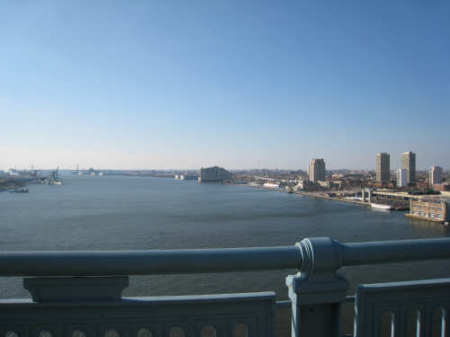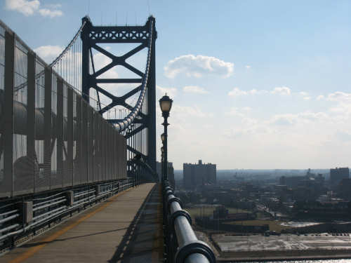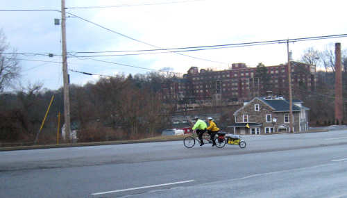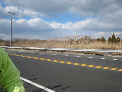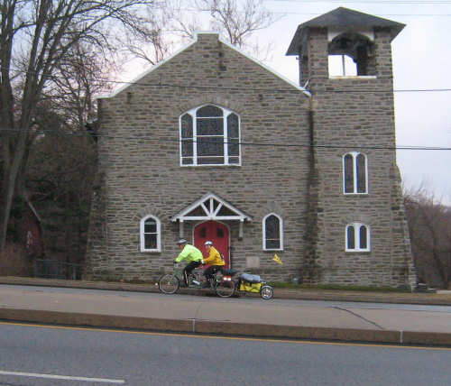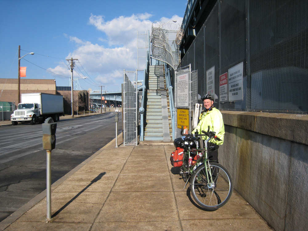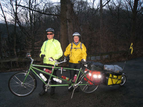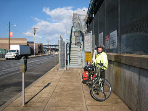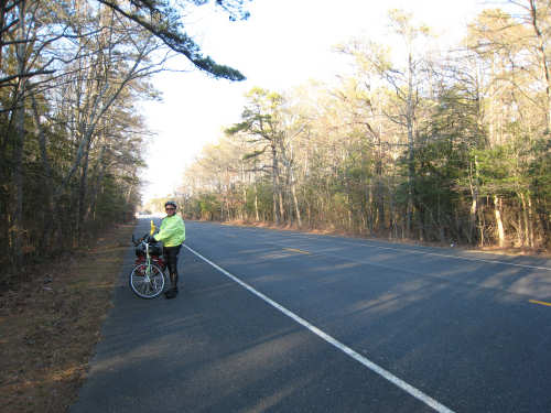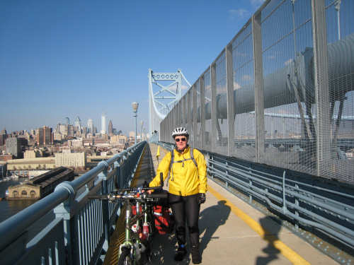 Saturday, March 01, 2008 Our trip has finally begun! Friday night there was a forecast of 1-2 inches of snow, but Saturday morning started out 40 degrees and rainy. As we started (at 6:45 am), the rain stopped and it soon cleared up and turned into a beautiful, sunny day. Clouds came and went all day, the temperature was cool, and the winds were fairly strong most of the day. A few times we were lucky and had the wind at our back, but it was tiring to battle the winds all day. Our house sitter, Therese, graciously got up early to take our picture as we left. Pat's mother, Eileen, also braved the weather to come out and take pictures of us leaving our street (Paper Mill Rd.) and heading up Baltimore Pike. We took Baltimore Pike into Philadelphia (about 10 miles east of us) and stopped at a diner for breakfast. Then we headed a few more miles east to the Ben Franklin Bridge, connecting Philadelphia to New Jersey. New Jersey, at least, was a lot flatter than Pennsylvania, but even the little rolling hills seemed hard with our heavy load. We have taken the bike to the New Jersey shore a number of times before, but we were obviously in better "bike shape" then (plus we weren't carrying nearly as much stuff!). We rolled into Stone Harbor 11 hours later (8 hours on the bike) feeling pretty tired and sore. Tomorrow morning, we will do the ceremonial dipping of our bike wheel in the Atlantic Ocean before heading down to Cape May, across the Delaware Bay on the ferry, and into the state of Delaware. |