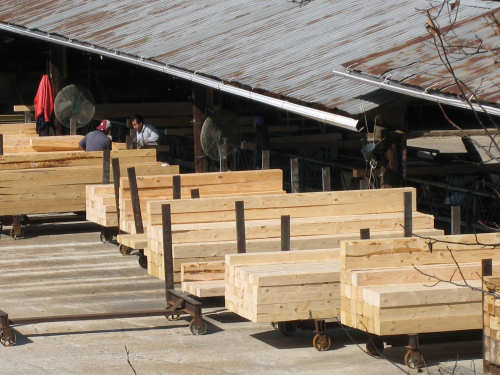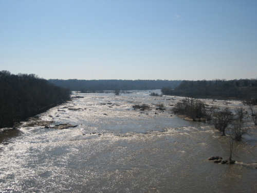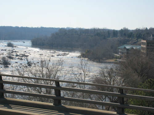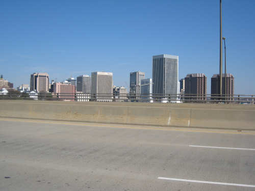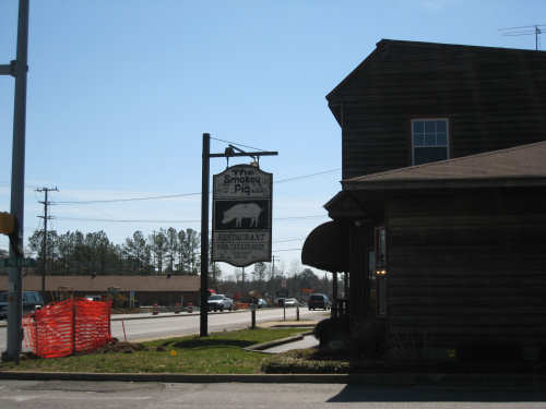 Thursday, March 06, 2008 Day 6 started clear and a little chilly but warmed up nicely. We were not looking forward to another day of Route 1 traffic and hills, but neither was a problem when we started out. There was little traffic and the hills were gentler and less frequent, which made the biking fairly pleasant. There was little of interest along the route today, but there were frequent historical markers. We took pictures of as many as we could, but it was amazing how many came at inconvenient times, like the bottom of a hill when we were trying to build up steam to go up the next hill. We saw several trucks loaded with cut pine trees and finally came across where they were headed. We watched pine trees go from trunks to finished boards at a saw mill. We rolled into Ashland in time for lunch and found a great restaurant along the road, The Smokey Pig. A friendly fisherman at the next table kept us entertained during lunch. We kept going down Route 1 into Richmond after lunch. Traffic was getting heavier. We saw some pretty streets in Richmond, got some views of the Capitol, the downtown skyline and the beautiful James River. As we moved out of Richmond, though, the traffic kept getting worse and started fraying our nerves. We were relieved to finally get off Route 1. We were staying with a high school friend of Pat's, John Thompson, and his lovely wife, Diana, in Hopewell, VA, about 20 miles south of Richmond. John has a fairly advanced case of ALS, but still drove out to escort us through the suburban streets to his house. We had a wonderful dinner and enjoyed John and Diana's company. We managed to do some work on the web site before turning in. Tomorrow - a day off! We look forward to catching up with the site, our emails, and some other business, as well as cleaning the bike and our clothes, and resting our legs and our butts! |