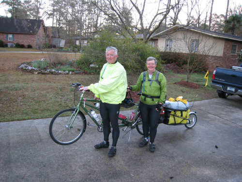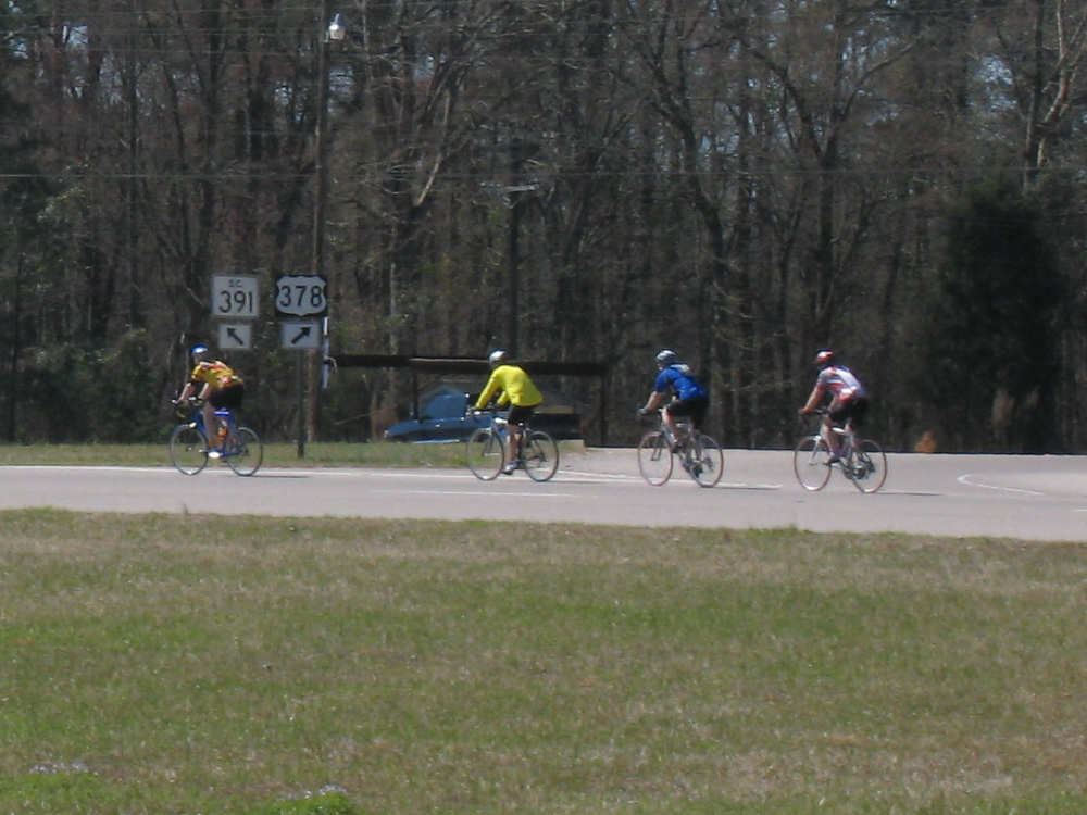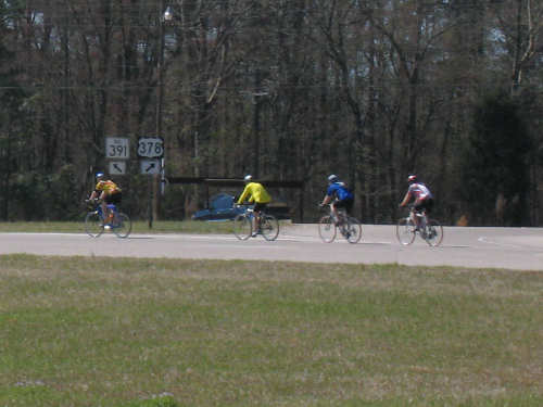 Sunday, March 16, 2008 We started off Day 12 at our usual time of 7:50 after a quick breakfast of cereal, juice, and coffee. It was hard to get going again after such a relaxing stay with Alan and Sylvia. The weather was gorgeous, sunny and a little cool to start. It warmed up soon, though. It wasn't all that hilly but we seemed to have a hard time of it at the beginning - guess we got out of the hang of it with just one day off. Within the first 5 miles we came to the bridge over the huge man-made Lake Murray. The lake has about 600 miles of shoreline and is created from a dam across the Saluda River - the largest earthen dam in the country, according to Alan. Midway across the bridge, we saw 5 circular structures out in the lake near the bridge. While we were wondering what they were and how one got over to them, we saw that there was a little cable car set up for that purpose. Our route had us skirting the edge of the lake for another 20 miles or so, so we'd catch glimpses of it now and then. From the many real estate signs we saw along the way, it was clearly a desirable place to own or rent property. We passed by many nice houses, and saw more red bud trees, pear trees, azalea, and one polonia tree. We often see hawks floating around overhead (sometimes wonder if we look tempting to them!); it's fun to watch them work the breezes. As we moved away from the lake, we got back to the scraggly pine woods we've seen since southern Virginia. The soil got less sandy and redder again, and was swampy in places. We saw some trees dripping with spanish moss. As we were stopped to take pictures and put on sunblock, we were amazed to see 6 bicyclists coming up on our side of the road. They called out to see if we were in need of anything, but we said we were fine and they proceeded to chug up the hill just ahead of them. We actually caught up with them later as they were pulling out of a gas station and heading around a traffic circle on their way back home, but they were a little too far ahead for us to get their attention. They were the first bikers we'd seen since Mt. Vernon, VA, so it was a shame we didn't get a chance to talk. We arrived in Saluda, SC around 2:10 and stopped at a cafe we saw just as we pulled into the center of town. We had a delicious buffet lunch and then rode around the corner and saw our hotel a little way down the street. We were checked in by 3:10. We went a mere 44.3 miles today, in 4 hours and 20 minutes bike time. Tomorrow, we have a longer day of about 65 miles which will take us into Georgia - state #8. We've neglected to mention a milestone we hit in the past week. On March 12th (Day 9), we went past the most miles we've done in a single trip; our total for the Iowa trip (RAGBRAI) had been 513 and we ended Day 9 at 571. We're currently at 740, so our next big milestone will be hitting our first 1000, which should happen somewhere in Alabama on Day 17. |