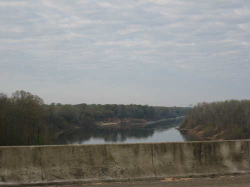 Wednesday, March 26, 2008 We had a great breakfast at the EconoLodge we stayed at last night and were underway at 7:30. Back on Route 80, where we would be much of the day, it seemed like we'd have a real easy day of it. The road was a divided highway with light traffic and a wide shoulder. The shoulder did have some gentle rumble strips running across the width but with a flat strip down the middle. So Pat still had to navigate a fine line, but at least he didn't have to worry about traffic. And even if he went over the rumble strips, it was gentle enough that it just like getting a Swedish massage on our tushes! About 10 miles out, though, the road narrowed to 2 lanes, still with a wide shoulder but the rumble strips covered the whole shoulder with just a small flat strip right at the edge of the traffic lane. Right about this same time, we saw signs for a road work zone that would go on for 10 miles. It seemed that they were working on building another 2 lanes to extend Rt. 80 as a divided highway. Part of this effort was building a second bridge, already completed but not open, over the Tombigbee River, one of 2 rivers that come into Demopolis. The other river is the Alabama, but we didn't see it. The construction wasn't a problem, since it was off to the side of the road, and it did provide a very conveniently-placed Port-a-Potty about 15 miles out. The scenery in the morning wasn't particularly stunning - some industrial places, a used car parts lot, very few houses, some trees with an occasional stretch of forest. We occasionally got a dogwood or redbud tree to add a little color. We'd seen a little wisteria in the last day or so, but at one point today, we saw a huge display, so much so that we could smell them from across the road. We also saw some deciduous trees finally beginning to leaf out today. We also saw some wildlife - a bunny hopped out from the brush by the side of the road and quickly hopped back in. We think we might have seen a flash of a deer's tail at one point. Other than that, the only wildlife we've seen to date are squirrels and lots of birds (I wish we could identify more of them). We've seen a variety of dead animals, however - possums, raccoons, skunk, a few small deer, some large birds (couldn't tell if they were turkeys or vultures or something else), and even some armadillo! We've seen a dead armadillo on each of the last 3 days, much to my surprise. I thought we wouldn't see them until Texas. There were almost no places to stop for a bathroom or something to eat along Rt. 80. We finally came to one about 30 miles out in a little town called Cuba. We bought some bananas there that looked (and tasted) very good. We asked about places to eat since it was getting close to noon, and the woman there said there was a truck stop 4 miles ahead, but nothing else until we hit Meridian, which was our destination for the evening, and it turned out she was right. Cuba was the last Alabama town on Rt. 80, and we waited excitedly to see the Mississippi border we knew would be coming soon. It was a big disappointment, however. We saw a sign for Lauderdale County, about where we thought the border should be, but no sign announcing the new state. We looked back at the sign going the other way and it clearly stated that Alabama started at that line, so we knew we were in Mississippi. We went on thinking there would be a welcome sign soon, but none ever appeared. So we entered our 10th state with not much to show for it. We found the truck stop in Toomsuba, MS and had a good lunch there. Toomsuba was a nice, little town, with the usual mix of houses in it, some very poor, some very nice-looking. We had turned onto Rt. 11 in Mississippi - another narrow, 2-lane road, but this time with deeper rumble strips right along the traffic edge with very little shoulder to the right of it. You can see the rumble strips in the first picture of the houses in Toomsuba - there happened to be a wide spot there, though, so it looks like a lot more shoulder than there usually was. So we were back to riding in the road; luckily, there was still not much traffic. The day was pretty uneventful from there until the outskirts of Meridian, about 15 miles later. There, the traffic picked up but we arrived at a motel and got off the road for the night. The owner of the small Economy Inn we ended up at was intrigued by our bike trip and gave us a large Snickers bar and bag of chips each for free! The day had started out warm with a cool breeze and some clouds. The breeze got fairly gusty at times, and it ended up quite warm (about 74 degrees) and a little humid. It felt like a longish day, but it was only 5 hours of riding time and a total of 53 miles. We arrived at our hotel around 3 pm. |