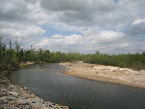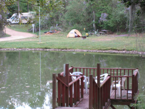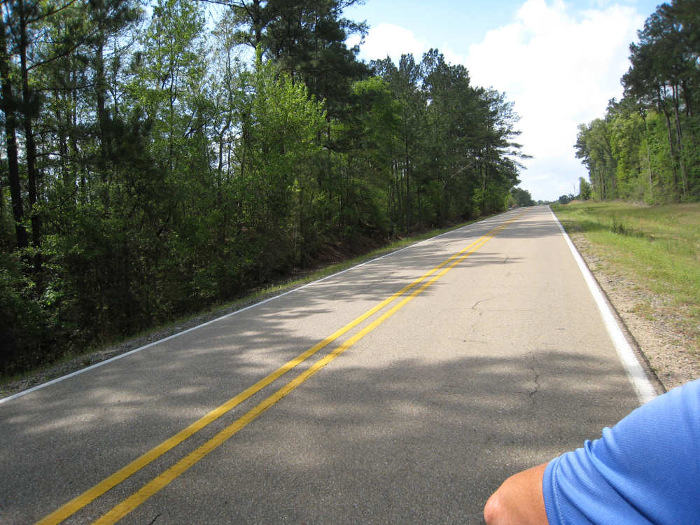 Monday, March 31, 2008 Two milestones today - we entered Louisiana, our 11th state, and we completed our first month of traveling! It was a long day - 66 miles - and we started late, given we had been camping and had to pack up the tent before we left. We had a nice breakfast at a cafe in Magnolia but the service was very slow. We finally got on the road at 8:50; we made it to our campsite in Saint Francisville, LA by 4:50, having made excellent time, mostly due to the relatively flat roads (most of the day) and relatively calm winds (most of the day). We were worried about the chance of thunderstorms we've had promised for days, and in fact the skies were pretty cloudy all day, but we made it through without any rain. The percent predicted for tonight is higher, so we may get rain overnight, but hopefully not when we're trying to pack up tomorrow morning. We started out on our usual 2-lane road in MS, with wisteria dripping off lots of the trees, and azaleas blazing from almost every house - from the large, expensive ones to the modest trailers. It was windy and hilly at the beginning, but the breeze kept us cooler. The sun was very hot early on, when it was out, and it was humid, so we were grateful for the clouds and the breeze. We went on a number of small roads today, but the navigation went smoothly. The big disappointment was that, like Mississippi, Louisiana did not greet us with a welcome sign. In fact, when we got to the state border, there was a welcome sign for Mississippi going the other way! So we finally got our MS welcome sign when we left it; maybe LA will do the same. We did like LA's Rt. 10, which we were on for about 20 miles - it was smooth and had a wide shoulder for at least the first 10 miles or so. Most of the rest of the day was on narrow, sometimes rough, no-shoulder roads. Lousiiana started out with lots of open pastures and cattle/dairy farms. Later, there were lots of dense, lush woods. There were several creeks, but many of them looked fairly dry. There were also several ponds, small lakes, and swampy areas. We did not see many towns, like yesterday, we went about 47 miles before we went through a town. We did find a place for lunch though - a gas station/food mart at an intersection of 2 roads. We found a similar place closer to our destination, where we got some ice cream and the attendant offered to fill our camel-backs with fresh water. We gladly accepted since we were running low and the water was pretty warm by then. The 2 towns we went through were both very impressive. Clinton, LA, the East Feliciana Parish county seat had a monumental court house and historic downtown section. Jackson, LA, was another lovely historic town. Unfortunately, we got to it near the end of the day and we were getting anxious to reach our campground and set up before it got too late or started to rain, so we flew by it fairly quickly. Our campground tonight was very different from last night's. It was in a beautiful setting, had nice bathrooms, a laundry facility, an enclosed pavilion, and lots of friendly campers. We were again the only tenters, and got to set up next to the pond, which has a friendly goose and mallard duck, besides several frogs who apparently will be serenading us tonight (a much more pleasant sound than the trains we had last night). Oh, and the showers had hot water, not that there's anything wrong with an invigorating cold shower at the end of a hot day. Tomorrow will be an exciting day - we cross the Mississippi River! - and thankfully, somewhat shorter than today. |