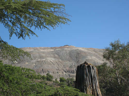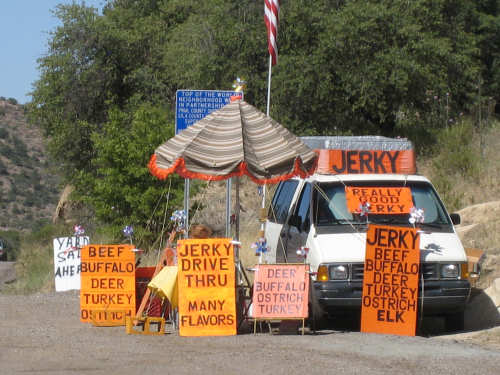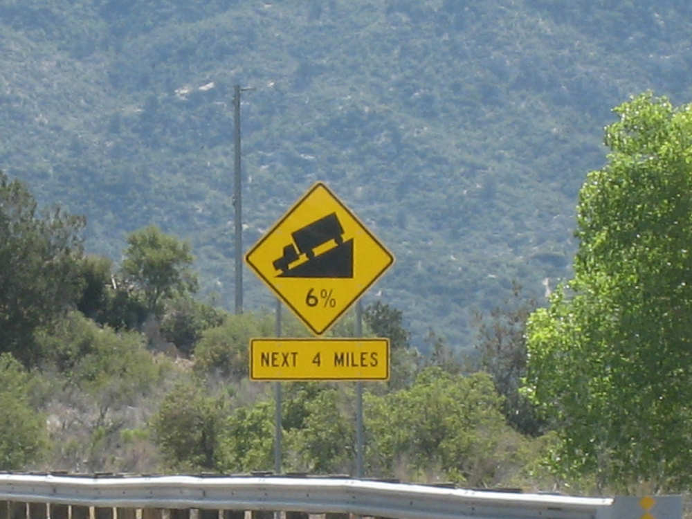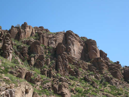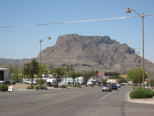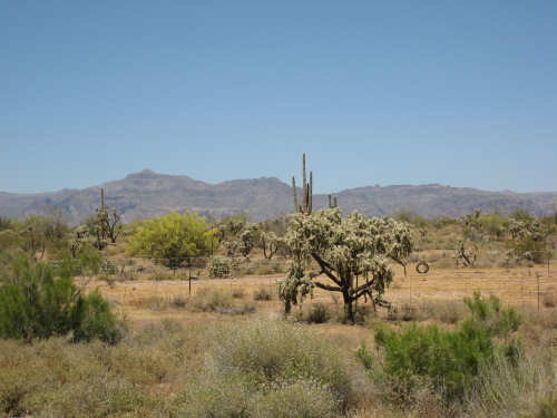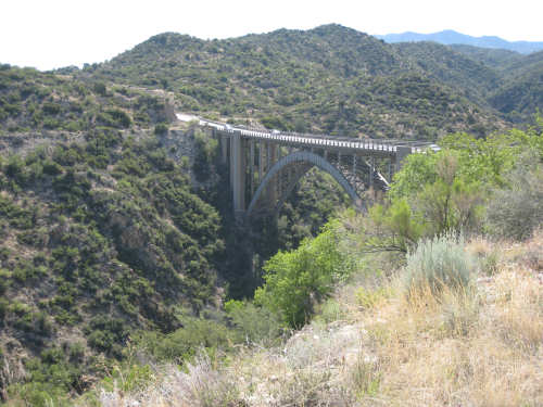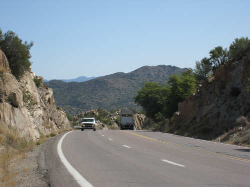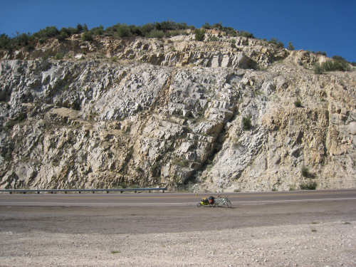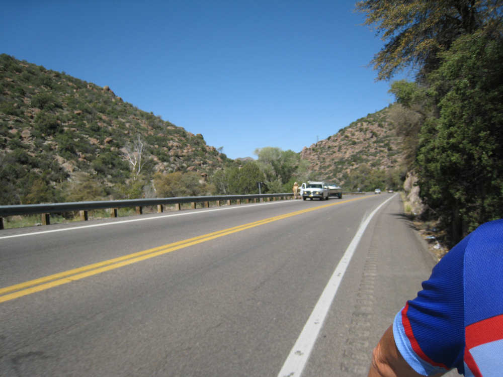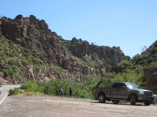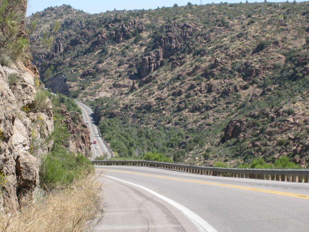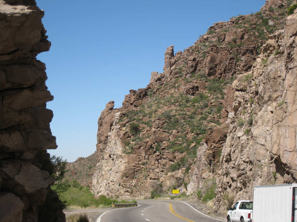 Saturday, May 03, 2008 We had a shorter day today with only one major hill. The winds were merciful to us again and were very calm all day. The day started out quite cool - 48 degrees - but went up to 90 by mid-day when we had gotten to the other side of the mountain. We had breakfast near the motel and found another biker about our age who was also trying to get an early start. He was going to be riding to Cholla (someplace we'll be passing through tomorrow) on an 85-mile ride with members of the local bike club. Sounded like a tough day's ride. We got underway at 6:45 and had an easy 6 miles or so before the big climb. We passed through the town of Globe, which had several houses built up on the hillsides and a copper and gold mining operation on some other hills. Mining seems to be the major focus around here. We went through 2 other towns in rapid succession, Claypool and Miami, both of which had mining operations. They were all operated by the same company that runs the Santa Rita Copper Mine that we saw in New Mexico (see April 28th). Soon after we left Miami, we began to climb slowly but surely. The grade was quite gentle at first, so we got a chance to warm up to it. It gradually increased to the 4-6% range. The scenery was quite stunning, particularly as we got up to the higher elevations. The mountains were made up of enormous rocks, some quite jagged and craggy, others round and smooth like stream pebbles. They must have been worn smooth by the wind; it would be very hard to believe these rocks had ever been under water. There was a fair bit of traffic, though, which detracted some from what was otherwise a pleasant ride. Just before the high point, we crossed the Pinto Creek on one of the highest bridges I had ever seen. We couldn't see any water in the creek but the gorge it formed was incredibly deep and had some great views. When we reached the high point (about 4600 feet), we found there was a little community up there. We were amused to see a sign that said Business District. There were 2 buildings that looked like they had been stores, long closed though. But there was one thriving business still going, and we got a picture of it. There were also some houses, mostly trailers, some of which seemed to be wedged into the huge boulders that were up there. It was quite a strange sight. We then began another nerve-wracking constantly-braking descent. Luckily, we had replaced the pads on the disk brake yesterday; they were already quite worn and I don't think they would have lasted through today. Part way down, the boulders became even more impressive in the area called Devil's Canyon. We stopped to take a number of pictures there. Shortly after that canyon, we went through a short tunnel, the Queen Creek Tunnel, through another mountain, and a mile or so later, we arrived in the town of Superior. Since it was nearly half-way to our destination, and the only other town before our destination, we decided to have lunch there even though it was fairly early. We ate at a small Mexican restaurant, of which there were at least 3 fairly close together. There were a couple of nice shops, selling antiques and Native American jewelry and crafts. Superior claimed to be at 2,888 feet, but it seemed much lower because we later climbed a bunch more to reach the Gonzales Pass, elevation 2,895. Just outside of Superior, we passed the Boyce Thompson Arboretum State Park, which looked beautiful with many varieties of yucca, cactus, and other flowering desert plants. Shortly after that, we came up to a jeep that was parked by the side of the road whose driver leaned out and called to us as we rode by. He had just passed us and pulled over to ask us about our journey. His name was Terry, he lived in Tempe, and he was an avid bicyclist himself, having done the Adventure Cycling Northern Tier a few years back, as well as several other major excursions. We chatted for quite a while about biking in the area. He invited us to stay at his place in Tempe for the night, but it was too far for today's stop and too short for tomorrow's. It turned out that the father and son bikers, Ian and Taran, that we met at the Kingston Lodge had stayed with Terry when they went through Tempe! He said he had heard that Ian & Taran had stayed at the lodge for several days to learn more about strawbale house construction from Catherine and Pete. Finally, Terry suggested that he ride with us a while tomorrow and show us a better way through Phoenix than the A.C. maps suggested. So we're looking forward to doing that. The rest of the ride was fairly uneventful. We went up the Gonzales Pass and down again (another steep descent, but not as long). Then, things leveled out and the road was either slightly downhill or level the rest of the way to Apache Junction, about 22.5 miles short of Tempe. The scenery along this stretch was beautiful too, with lots of desert plants and mountains in the background. The traffic was still fairly heavy and the shoulder here was very rough, so we tried riding in the road as much as possible - it made for a less than relaxing end to a not very relaxing day. As we approached Apache Junction, we went by several housing developments and small shopping plazas, all of them in a bright Southwestern style and all looking extremely new. Apache Junction itself had a very new look to it. We found our motel and got settled in at 2:30 (3 hours earlier than yesterday), having come 57.4 miles (20 short of yesterday) in 5 hours and 20 minutes of bike time. We realized that there was a bike shop in town and found out they closed at 5 pm on Saturdays, so we rushed over and got new chains put on the bike and picked up some replacement pads for the disk brake. It was a great bike shop and we had a pleasant chat with the owner and his helper while they worked on our bike. Then we went off to dinner and came back to work on the website. |