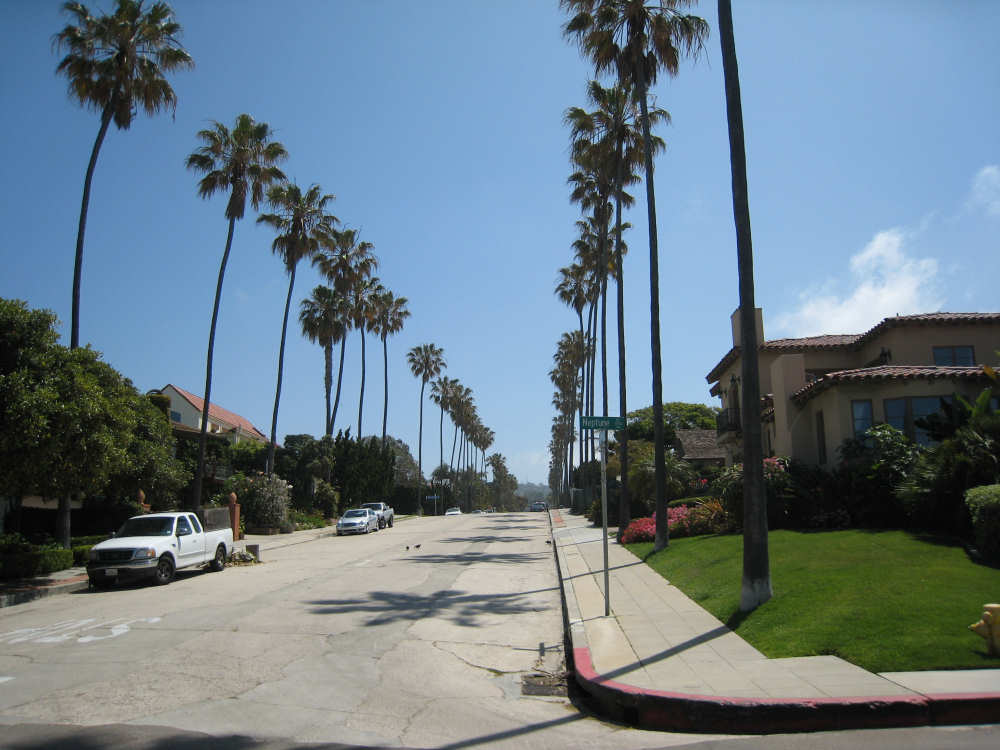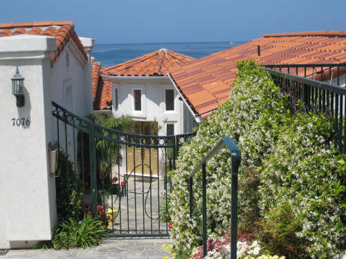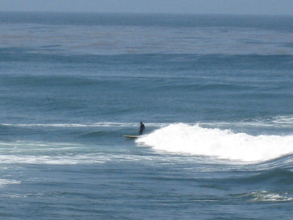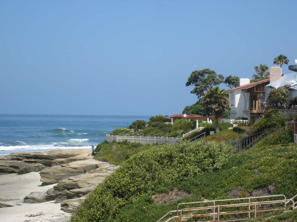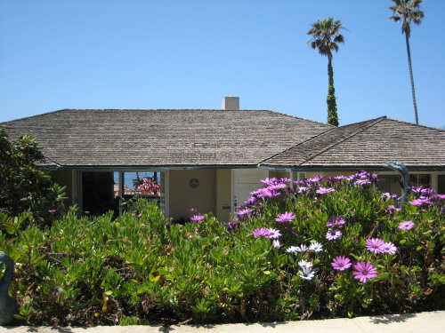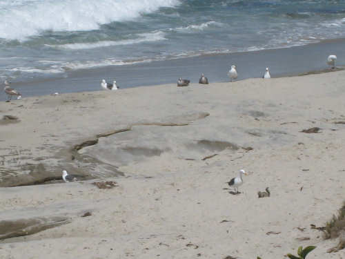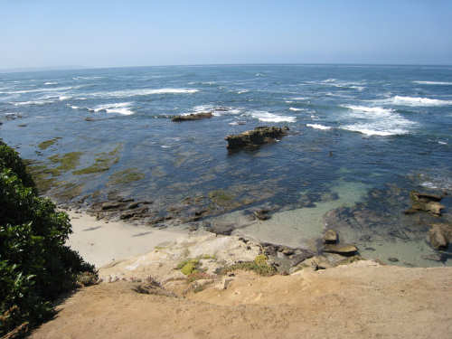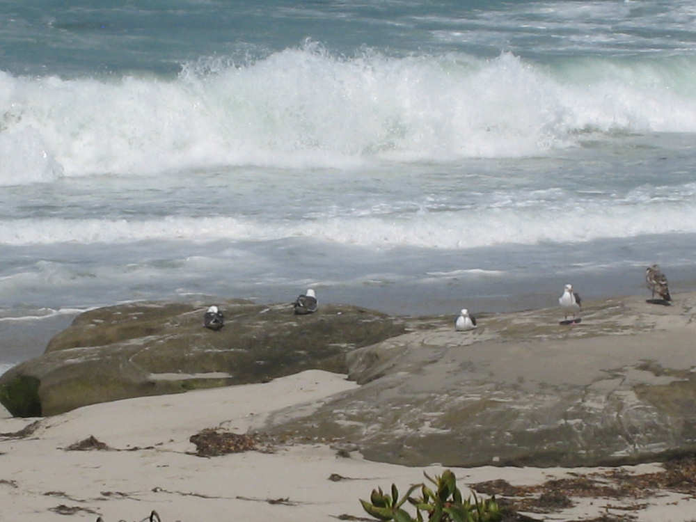 It's a beautiful day here in La Jolla - the May Gray blew away early this morning and it's been bright and sunny ever since. We may stay here forever. It's just too beautiful and relaxing to leave. We went for a walk along the ocean this morning and saw a number of other people enjoying the weather, the ocean, and the beauty of this place in general. People were jogging, walking dogs, sitting on benches watching the waves, playing on the beach, and surfing. We watched one surfer come off the beach and walk into his home across the street! What a life! We've heard that work here follows the surf - when the surf's up, work stops and people hit the beach. We saw a group of guys doing landscape work (THAT is a thriving business here) take a break and walk across the street to watch the ocean. It is very seductive. Like I said, we may have to stay here forever.