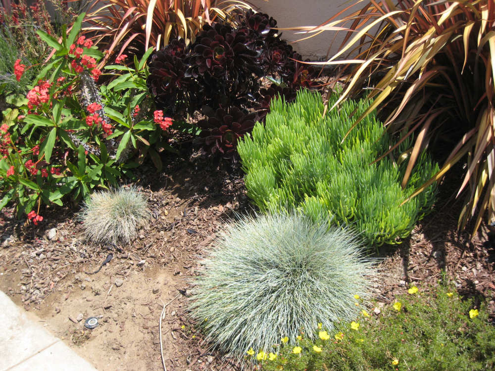 They look attractive clustered with some sedum and red flowers