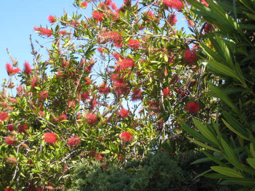 Other red flowers, I think it's called a bottle brush plant