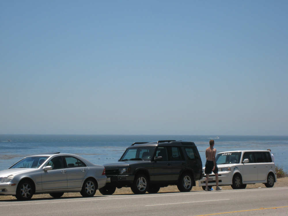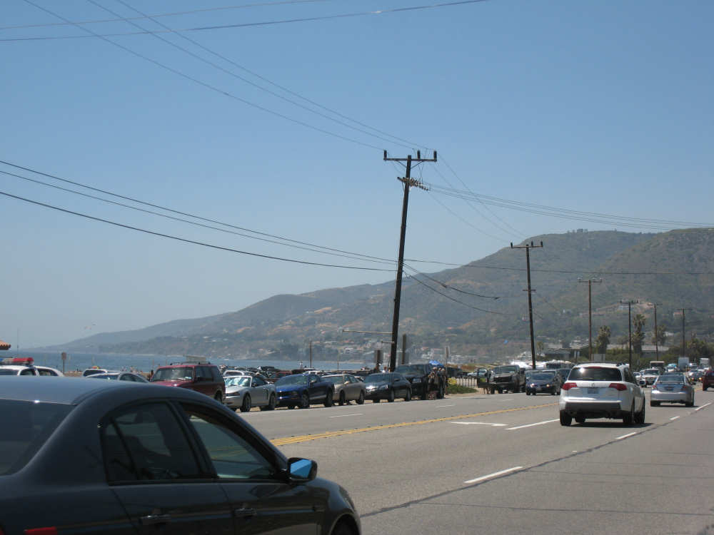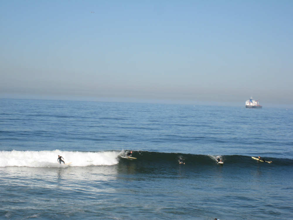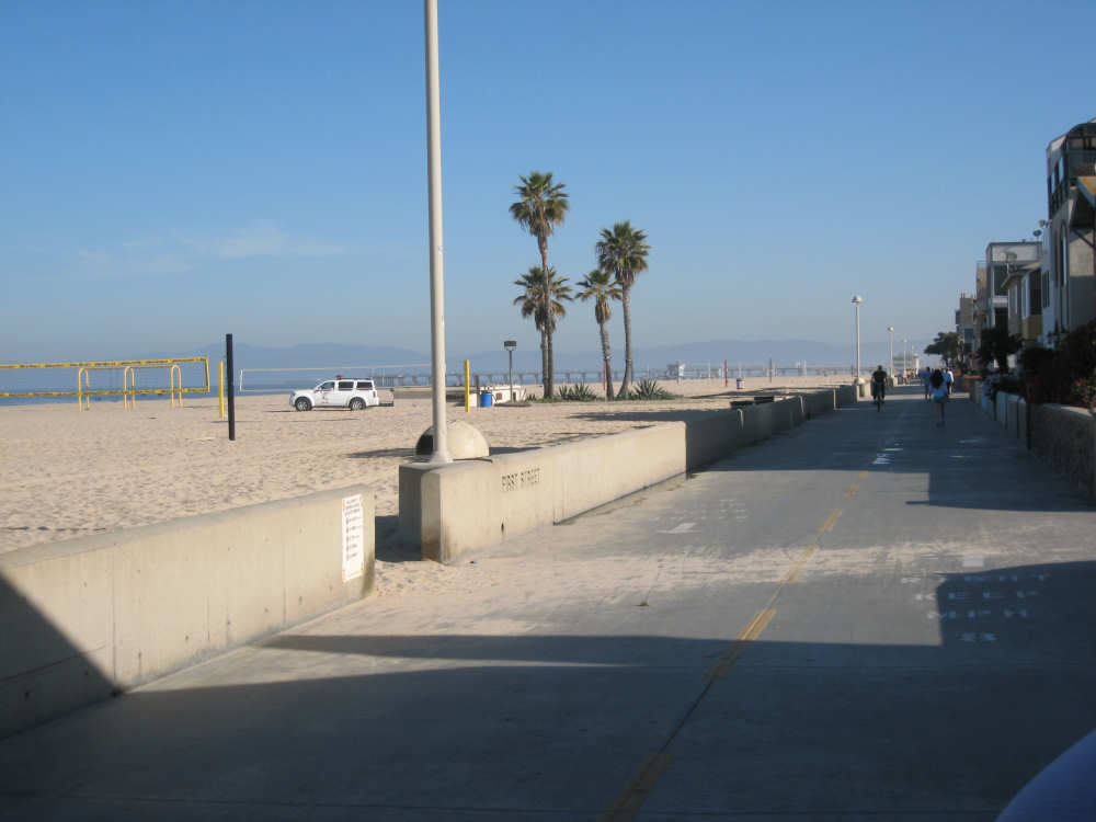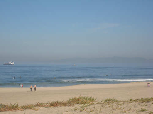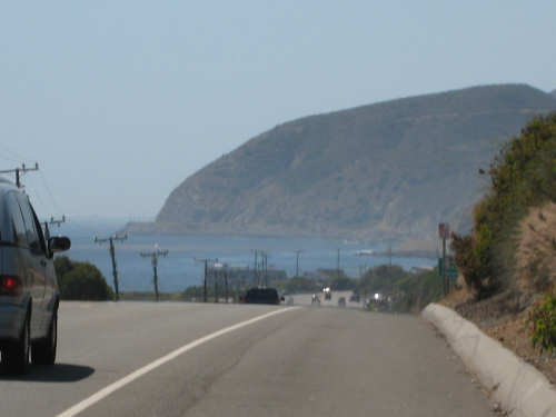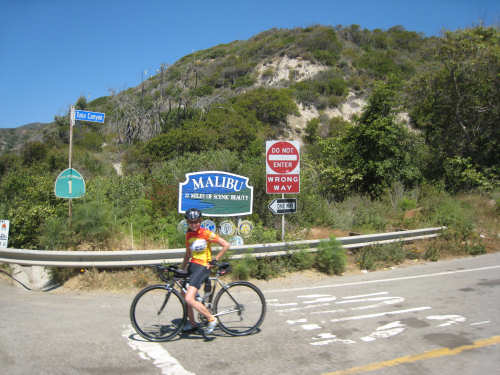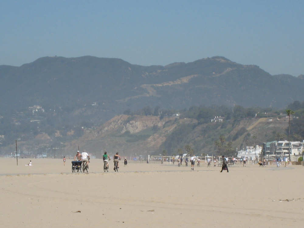 Saturday, May 17, 2008 After yesterday's bad experience with the bike path through LA, Pat swore he'd never get on one again. I finally sweet-talked him into trying the one Adventure Cycling recommended as an alternative to Route 1. I had also gotten some confirmation last night, from a fellow college alumna, that the bike path was pretty straight-forward. She also assured me that it would be easy to find because there would be a million people on it today, given it's Saturday. So we set out after breakfast in a local diner and found it quite easily. It was a very nice path, not so crowded that we couldn't move at a good pace, but definitely well-populated. There were several lovely shore houses right along the path and then a wide stretch of sand to the ocean. There were lots of surfers in the water in places, and we saw something new today - people standing on surfboards rowing with long oars, almost like a Venetian gondolier. We decided this must be a way to strengthen one's arms and legs for surfing. There was one obstacle on the path, a set of stairs we had to climb, but someone kindly offered to help us up them. The day was sunny and the beach was quite hot, but the ride was smooth and enjoyable. We went around a large marina, Marina del Rey, with some help from other bikes on the trail - this was the only tricky part of the trail - and ended up in the town of Venice. Venice was a very colorful town with brightly colored markets, street vendors selling all manner of arts and crafts, and some interesting sculptures and murals. We went past several state beaches and ended up at the Will Rogers state beach in Santa Monica. There the path ended and we turned back on Route 1. The highway was busy, but it had a good shoulder so it wasn't difficult riding. We soon came to Malibu which promised to be very scenic, but the road was being repaved and it was currently scraped of the old asphalt, so the surface was very rough. This went on for 4 or 5 miles with a little break of smooth surface in the middle. This spoiled our appreciation of Malibu's scenicness somewhat, but there were definitely some nice houses in town, several expensive restaurants, and some beautiful beaches. We didn't really see the beach until near the end of town, since the houses blocked the view from the road. Many of the houses along the beach overhung the water. As we headed out of Malibu, the ocean was still hard to see in many places, either because of the terrain or landscaping, or because there were so many cars lined up in front of it. We could always tell where there was beach access by the cars lining the road. The terrain became more mountainous, and there were several impressive canyons along the route. We met a lone biker who was almost as loaded down as we were (he has the unique distinction of being the only bike slower than we were!). He told us that one of the canyons we passed was the site of a very bad wildfire last November that destroyed a lot of houses. Clearing brush is taken very seriously here, and we saw workers doing so in a couple of places. The combination of the tall mountains and their stunning foliage on one side, and the beautiful ocean on the other was quite delightful. We had planned to meet Heather and Kevin - Heather being the sister-in-law of Pat's daughter Sarah - somewhere in Point Mugu State Park and as we neared our destination, we saw Heather flagging us down. As they live about 20 miles off route, they graciously offered to drive us in their car and pickup truck to their home for the night. We spent a pleasant evening together, ate lasagna and salad that Heather prepared for dinner, played a bit with their 2-year-old daughter, Katie, and then finally got to work on the website. We biked almost 50 miles today in almost 5 hours, a decent average considering the hilliness on the second leg of our trip. Tomorrow, they'll drop us off back on route again and we'll head off to Carpinteria. |