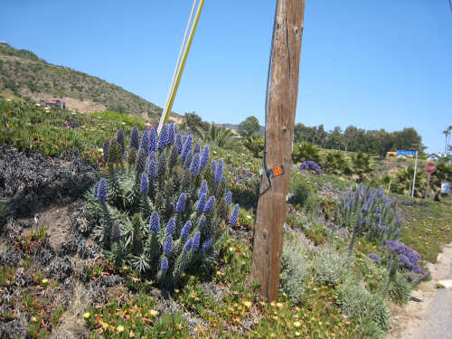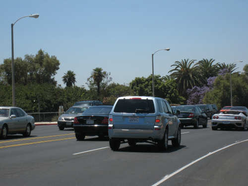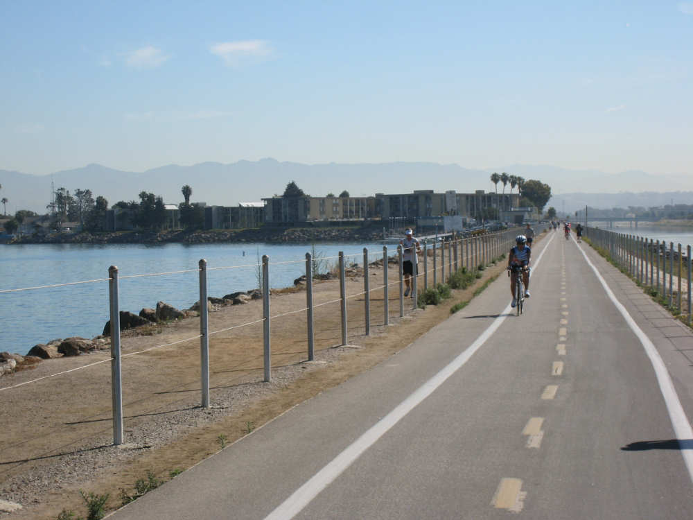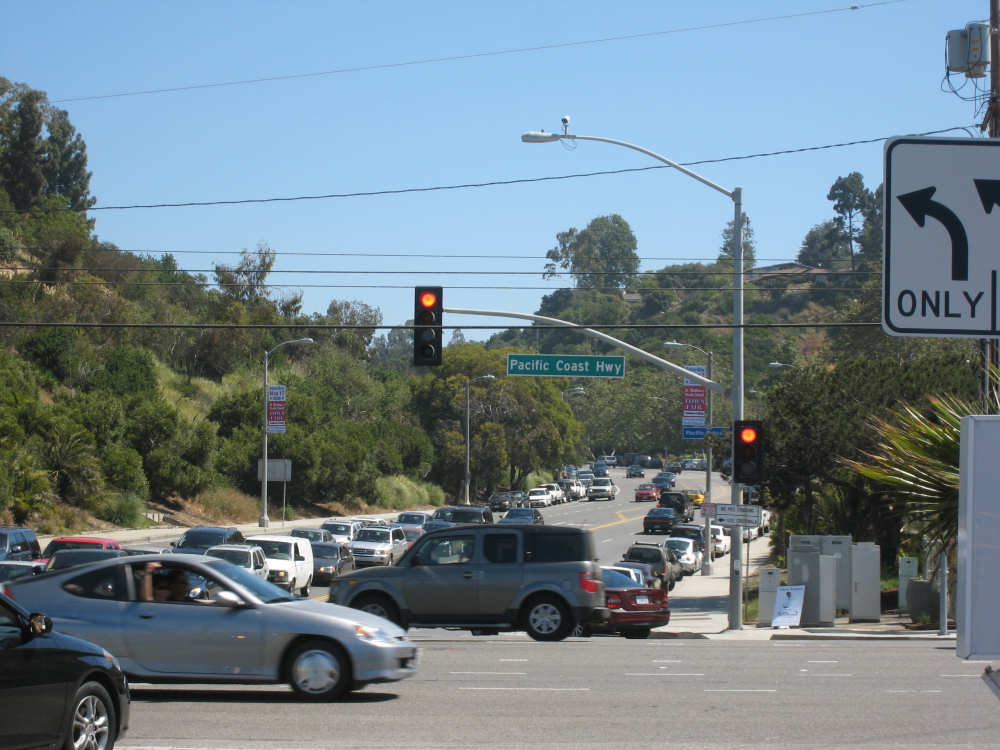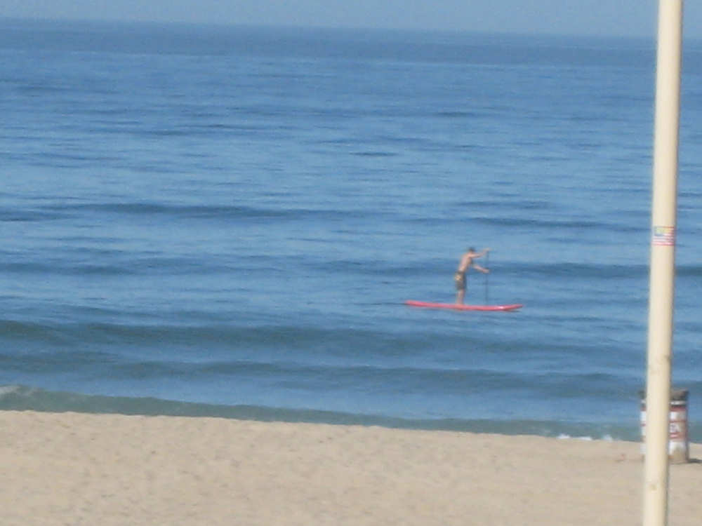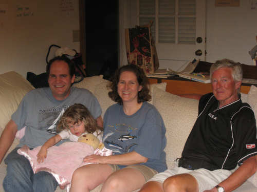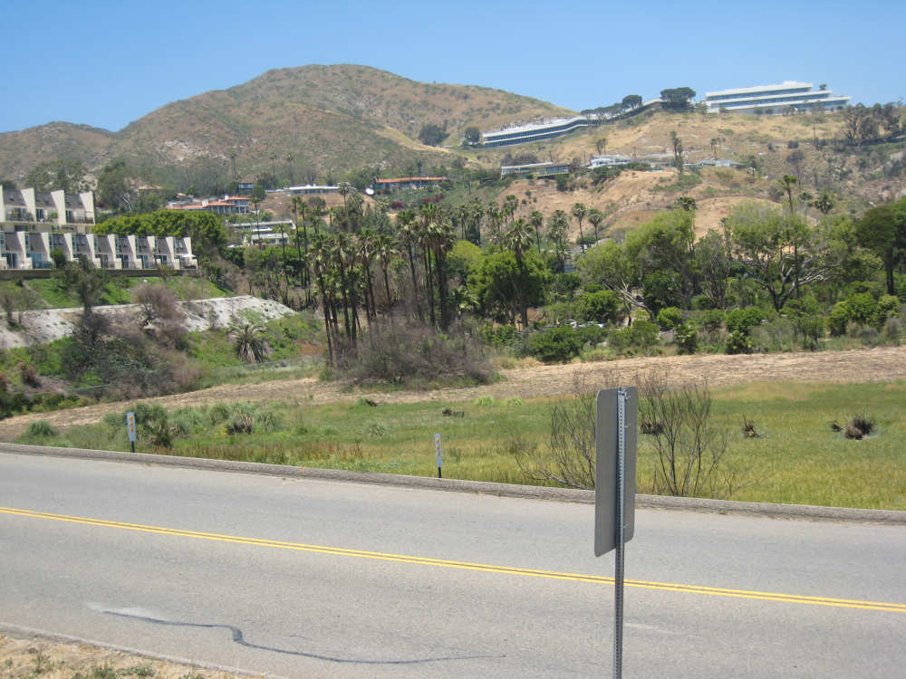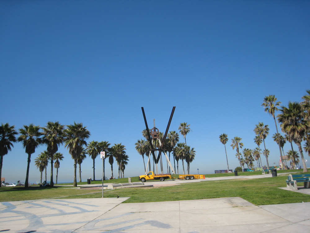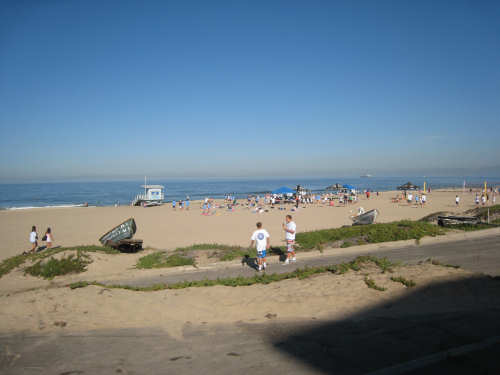 Saturday, May 17, 2008 After yesterday's bad experience with the bike path through LA, Pat swore he'd never get on one again. I finally sweet-talked him into trying the one Adventure Cycling recommended as an alternative to Route 1. I had also gotten some confirmation last night, from a fellow college alumna, that the bike path was pretty straight-forward. She also assured me that it would be easy to find because there would be a million people on it today, given it's Saturday. So we set out after breakfast in a local diner and found it quite easily. It was a very nice path, not so crowded that we couldn't move at a good pace, but definitely well-populated. There were several lovely shore houses right along the path and then a wide stretch of sand to the ocean. There were lots of surfers in the water in places, and we saw something new today - people standing on surfboards rowing with long oars, almost like a Venetian gondolier. We decided this must be a way to strengthen one's arms and legs for surfing. There was one obstacle on the path, a set of stairs we had to climb, but someone kindly offered to help us up them. The day was sunny and the beach was quite hot, but the ride was smooth and enjoyable. We went around a large marina, Marina del Rey, with some help from other bikes on the trail - this was the only tricky part of the trail - and ended up in the town of Venice. Venice was a very colorful town with brightly colored markets, street vendors selling all manner of arts and crafts, and some interesting sculptures and murals. We went past several state beaches and ended up at the Will Rogers state beach in Santa Monica. There the path ended and we turned back on Route 1. The highway was busy, but it had a good shoulder so it wasn't difficult riding. We soon came to Malibu which promised to be very scenic, but the road was being repaved and it was currently scraped of the old asphalt, so the surface was very rough. This went on for 4 or 5 miles with a little break of smooth surface in the middle. This spoiled our appreciation of Malibu's scenicness somewhat, but there were definitely some nice houses in town, several expensive restaurants, and some beautiful beaches. We didn't really see the beach until near the end of town, since the houses blocked the view from the road. Many of the houses along the beach overhung the water. As we headed out of Malibu, the ocean was still hard to see in many places, either because of the terrain or landscaping, or because there were so many cars lined up in front of it. We could always tell where there was beach access by the cars lining the road. The terrain became more mountainous, and there were several impressive canyons along the route. We met a lone biker who was almost as loaded down as we were (he has the unique distinction of being the only bike slower than we were!). He told us that one of the canyons we passed was the site of a very bad wildfire last November that destroyed a lot of houses. Clearing brush is taken very seriously here, and we saw workers doing so in a couple of places. The combination of the tall mountains and their stunning foliage on one side, and the beautiful ocean on the other was quite delightful. We had planned to meet Heather and Kevin - Heather being the sister-in-law of Pat's daughter Sarah - somewhere in Point Mugu State Park and as we neared our destination, we saw Heather flagging us down. As they live about 20 miles off route, they graciously offered to drive us in their car and pickup truck to their home for the night. We spent a pleasant evening together, ate lasagna and salad that Heather prepared for dinner, played a bit with their 2-year-old daughter, Katie, and then finally got to work on the website. We biked almost 50 miles today in almost 5 hours, a decent average considering the hilliness on the second leg of our trip. Tomorrow, they'll drop us off back on route again and we'll head off to Carpinteria. |
