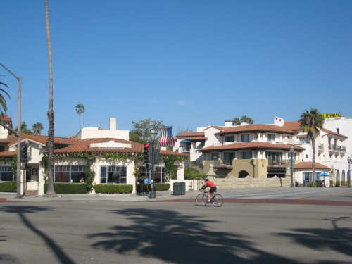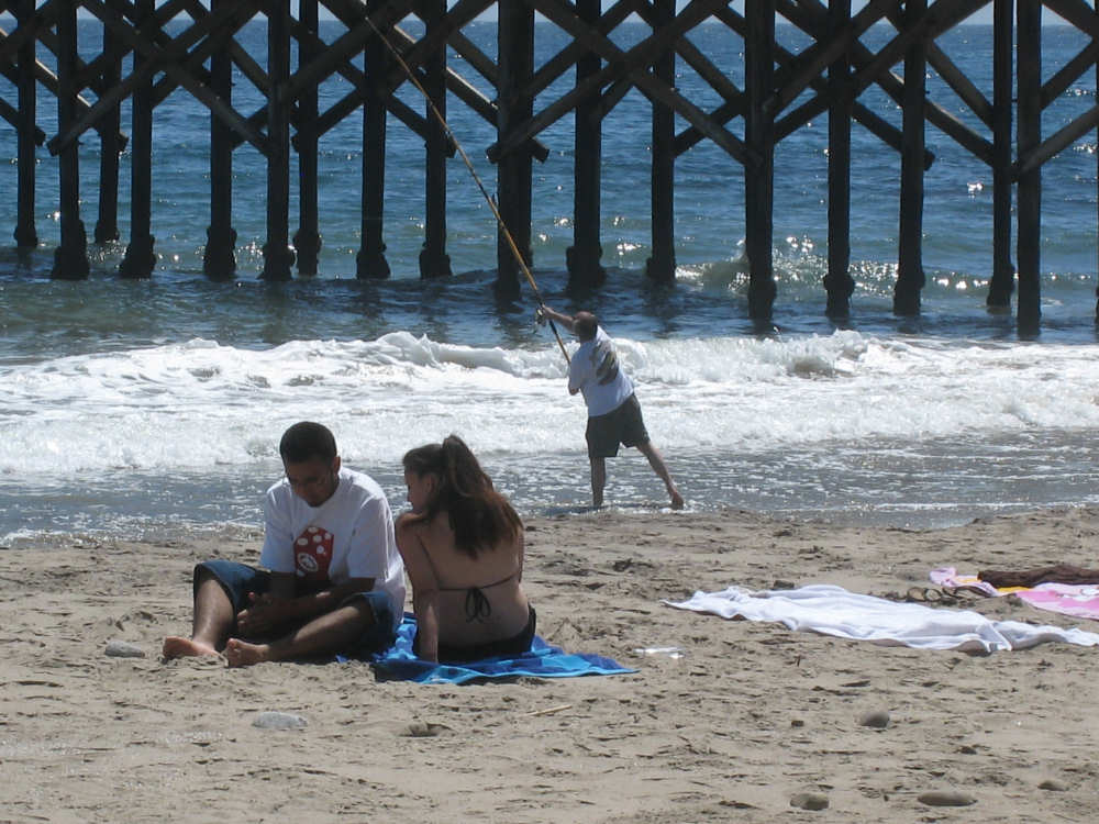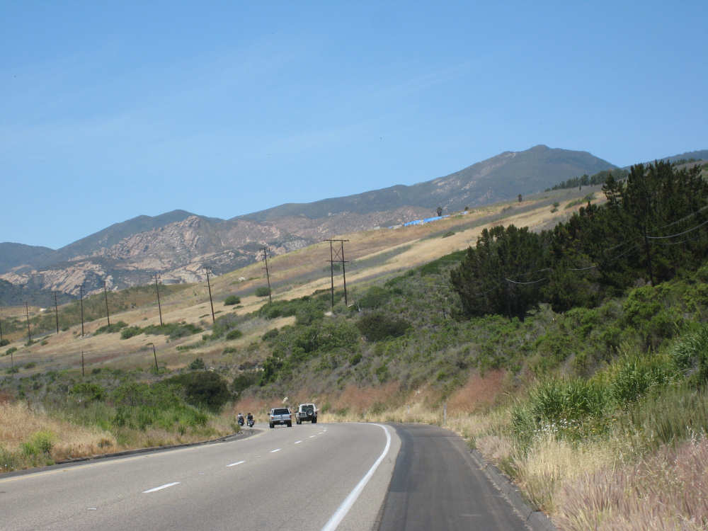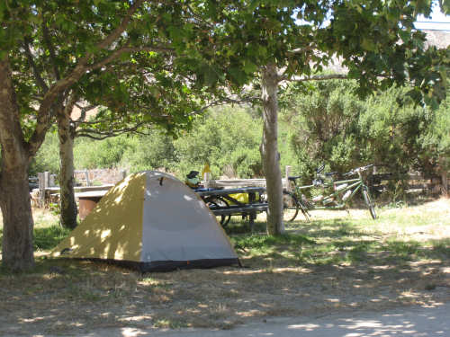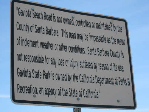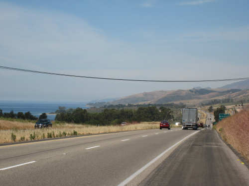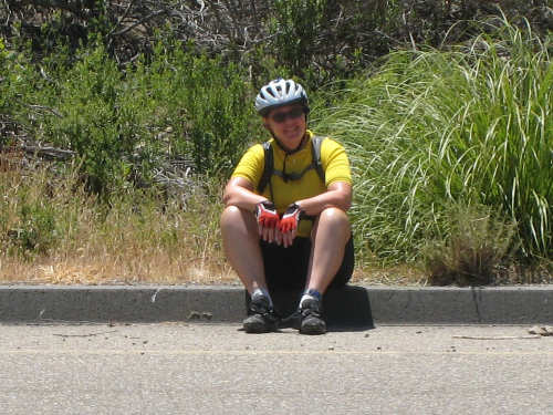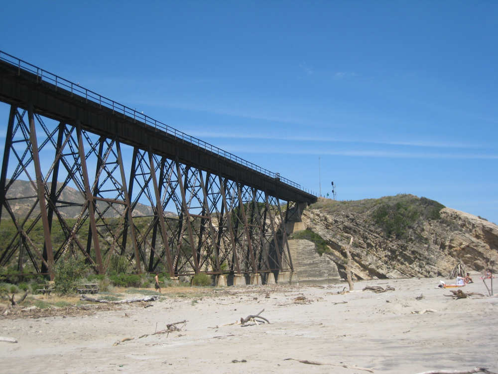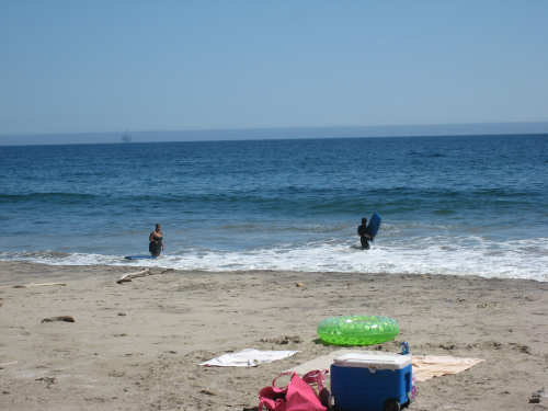 Monday, May 19, 2008 Not a bad day. It wasn't as hilly as we thought it would be and getting through Santa Barbara wasn't nearly as bad as going through LA and Long Beach. In fact, it was quite pleasant. We started out at 7 this morning. It was cool, but sunny. We rode alongside Rt. 101 which was packed with cars in morning rush hour. We were amused to be going faster than the cars on the freeway for a change. After about 5 miles, we came to the little town of Summerland which seemed like a resort town - lots of fine antique stores, little expensive cafes, country bed & breakfasts and inns. Breakfast was expensive but good and the town had a nice relaxed feel to it. We continued on our little side road right into Santa Barbara and continued following a major street down along the ocean and then through quiet little neighborhoods. The city was very clean and pretty, the streets were wide with lots of flowers and beautiful plants along them, people were out walking and biking and generally enjoying themselves. We stopped to buy provisions for today and tomoorow in a grocery store in the town of Goleta, which seemed to be a suburb on the north side of Santa Barbara. We got to talking with a woman who lived in Goleta and was heartily in favor of the 'no-growth' policy that Santa Barbara was trying to follow. When she commented that they did not want to become another Los Angeles, I had to agree that turning that pleasant, relaxing city into something more like the nerve-wracking place we got lost in two days ago would be a terrible shame. Soon after we left Goleta, we got onto Rt. 101, but by this time the traffic was quite manageable and it wasn't a bad ride at all. It was more hilly here, though. For the rest of our day's route, we had ocean to the left and mountains to the right. Today the mountains were the most impressive - very tall, with deep canyons knifing through them every so often. The ocean was a bit farther away from us than it has been and was very calm today, so it mostly was a flat, deep blue presence poking through the trees, road, railroad tracks, and other obstructions. We passed 2 other state parks/beaches, El Capitan and Refugio, before we got to Gaviota, the one we were staying at. Gaviota has a hiker/biker camp facility as well as regular camping. The hiker/biker is a cheap way to camp, reserved for people who arrive on foot or by bike. You get a camp site with a picnic table, fire ring, and access to water and bathrooms. The showers cost a quarter for every 2-1/2 minutes. We arrived nice and early, at 1:45, and so far we're the only ones in that category. There are a half-dozen other campers here. We wandered down to the beach and took some pictures of the few folks there, and then came back to work on the web site. It was a short day - 44 miles in a little over 4 hours of bike time. A good average, despite the hills today. Tomorrow we start with a major climb and lots of ups and downs all day, but we'll be ending in a motel room and the day after will be a rest day, so we should be ok. |