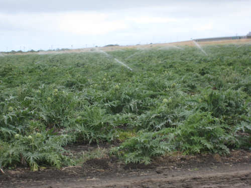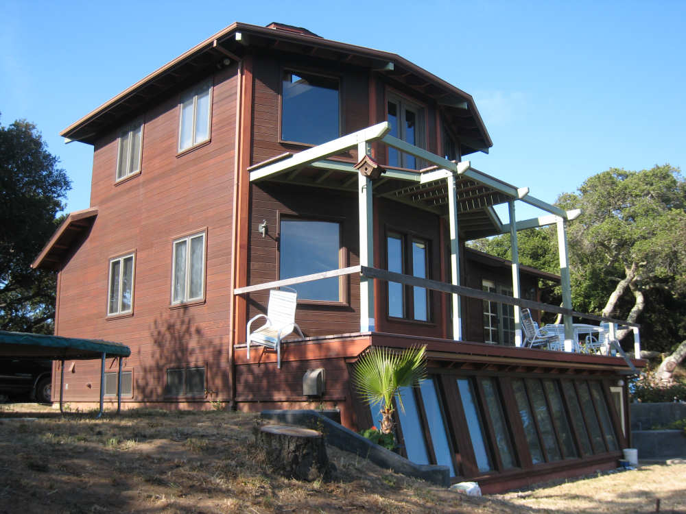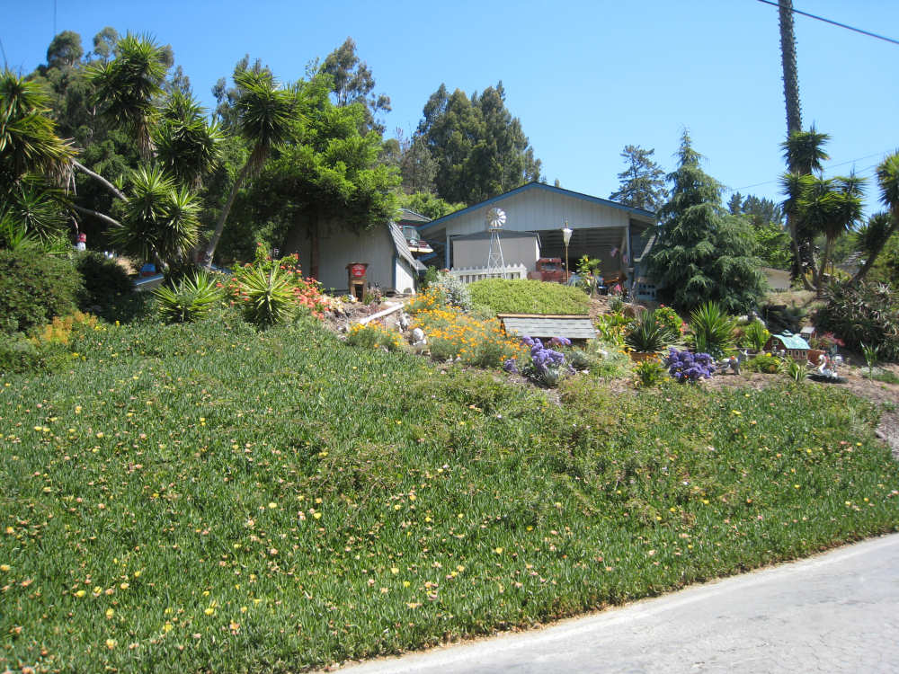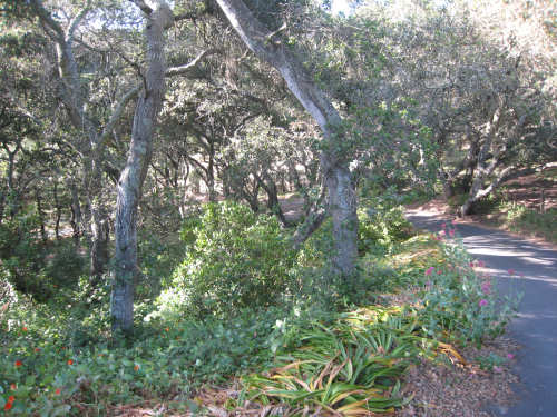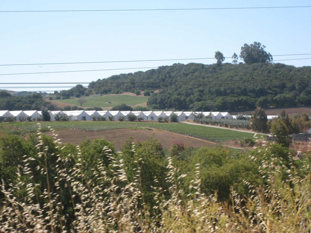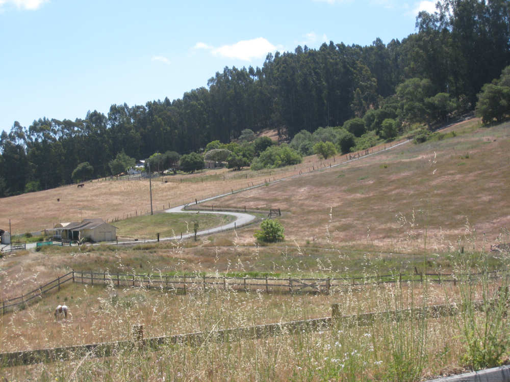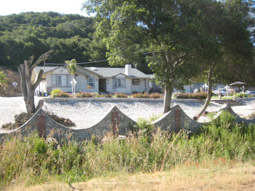 Monday, May 26, 2008 Today was a short day. We went from our motel in Marina to the home of Seth and Jane in Aromas. Seth is a family friend of Pat's. The route took us inland into a small farm/small ranch residential area. We started off on Del Monte Blvd., riding past a Dole processing plant, which seemed strange (Seth told us later that it used to be a Del Monte plant). We then got onto a frontage road parallel to Hwy. 1 since bikes were not allowed on 1 at that point). The bike path went past several farm fields and we saw one large field of artichokes in the process of being harvested. On a rougher, more overgrown section of the path, we saw a large number of bunnies popping in and out of the brush on the sides of the path. We'd never seen so many rabbits in one place before! At the end of this path, in the town of Castroville, we went onto Rt. 156 which was now open to bikes. We soon turned off onto more local rural roads. Many of the houses along these roads were small and rustic and had horses, goats, and maybe a cow or two. Some had larger tracts and some had grander houses, but by and large it was a simple, country area. Seth had warned us that some of the roads we'd be on were hilly, and he was right. The last road before his house, in particular, had a long uphill stretch with mostly 5-6% grades, although it went up to 10-12% at one point. This didn't even begin to prepare us for Seth's driveway, though, which he had told us was 21%. We managed to get up a little bit of it, but soon got off and pushed the bike the rest of the way up. We spent the rest of the day relaxing with Seth and Jane, and their daughter Kelsey who had just finished her senior year at high school. Tomorrow, we'll head off to San Jose, and then Wednesday to San Francisco. We only did 25 miles today in about 3 hours of bike time, but we could tell we were dragging a bit from the last 3 days with lots of climbs. We're very much looking forward to our rest period in San Fran. |