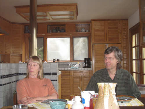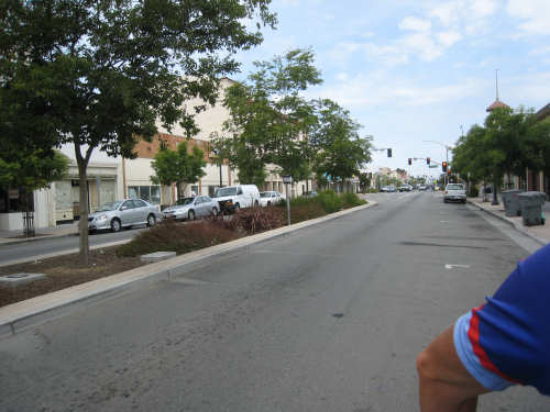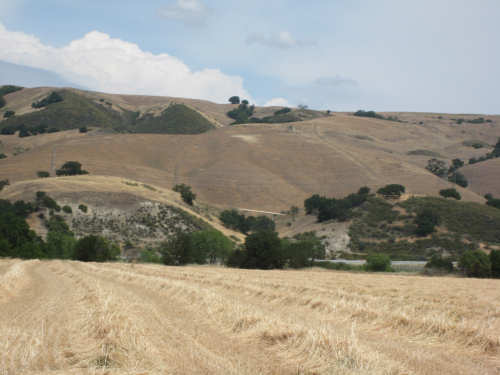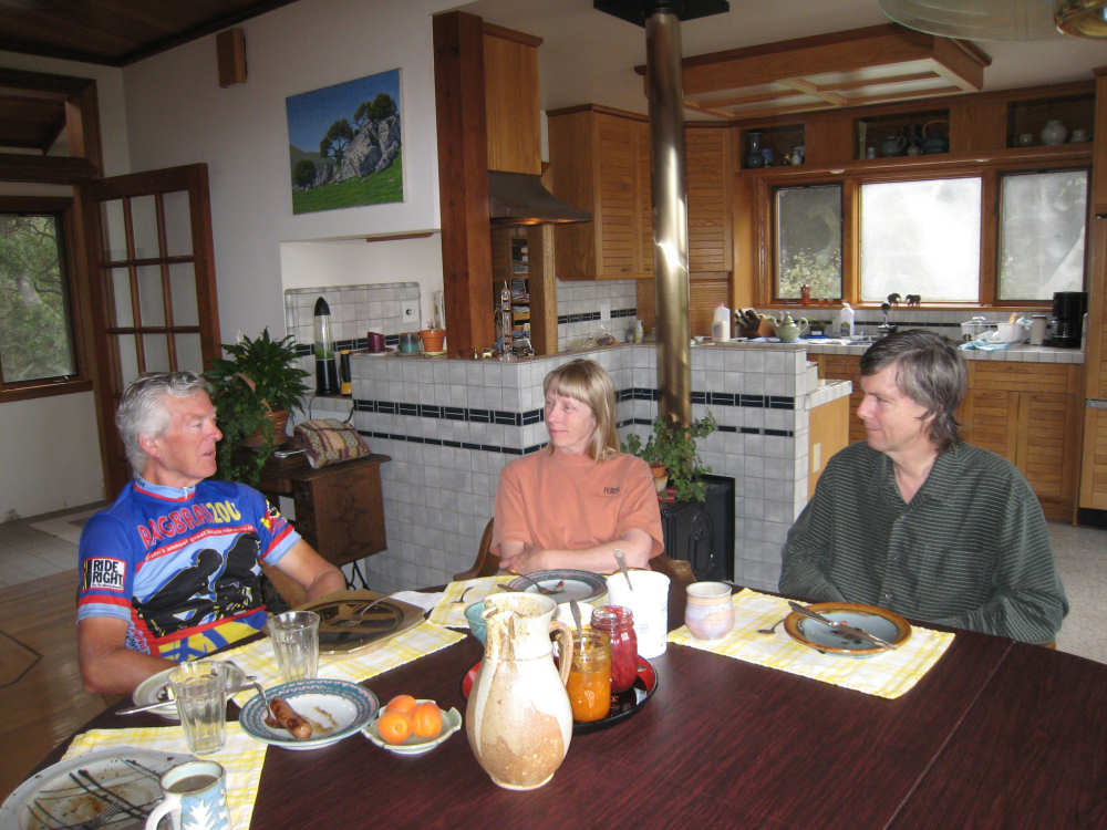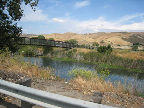 Tuesday, May 27, 2008 We started out with an interesting little adventure today. Last night as we were going over the route with Seth & Jane, we realized there was a part of our route that might not really exist. At least, Seth didn't think it existed and Google Earth was a little fuzzy at that point. Seth was also worried that the alternative, going on Hwy. 101 at that point, meant that we would go over a bridge with no shoulder, which could be dangerous if there was a lot of traffic. So, after a delicious breakfast with Seth & Jane, we started off. At the end of their road, we turned onto Anzar Road, named after the famous Juan Bautista de Anza that we had seen signs about since we got to California. It turns out that Seth knows the grandson of this guy, who owned a large parcel of land in the area (given to him by the king of Spain). Much of the land had been parceled out since those days, but the grandson still had part of the original grant. Seth also told us that the San Andreas Fault ran along that road, but we didn't feel anything shift while we were on it. When we turned off onto San Juan Highway, the interesting part began. It started off as a normal looking 2-lane road, but then got a little rougher. After a bit, we got to a point where it was packed dirt and looked like a private road belonging to a gravel company located there. The Road Closed sign was a little discouraging, too. But we decided to see where it led, and soon came to a very narrow hump beyond which there were only trees. To our right was what looked like a parking lot for the gravel company, so we didn't venture there (although looking again at Google Earth afterwards, it looked like there might have been a road leading out of that which would have taken us where we were trying to go - who knows). So we backtracked and went onto Hwy. 101 which turned out not to be so bad - the traffic was light enough and the bridge was short enough that we managed to get over it without getting into anyone's way. We saw a frontage road to our right before we turned off the highway, which is what we thought we should be on, but couldn't figure out how we could have gotten onto it. At any rate, we got off 101 at the next exit, onto something called Y Road. It also started out pretty innocently, and then got rougher. It meandered through dirt roads that looked like they were mostly traveled by tractors from the farms we went through. The surface wasn't too bad, though, and we managed to keep up a fairly decent pace. We eventually got onto Highway 25 and things were normal from then on. From Hwy. 25, we turned onto Bolsa Rd. and passed several fields, many of which had groves of cherry trees, loaded with cherries. We got a strong whiff of garlic and, sure enough, we soon came into the town of Gilroy, garlic capital of the world (Seth works in Gilroy and had told us about it's claim to fame). Gilroy turned out to be a charming town. We stopped for a snack at Sue's Cafe, had some great smoothies, and started off again only to discover the back tire was flat. We pulled off and took the bike apart to fix the flat and decided the tire itself needed to be tossed - it was getting quite threadbare. It had lasted us about 3600 miles, though, which seemed pretty decent. We also took the opportunity to use one of our new thorn-resistant inner tubes, so we'll see how they do. After Gilroy, things were pretty tame. Bolsa Rd. became Monterey St. on which we stayed for the rest of the day. We passed through a number of smallish towns - San Martin, Morgan Hill, Coyote - until we got into the town limits of San Jose. Morgan Hill was the largest and nicest of the small towns and had an interesting downtown area. We could tell when we got to San Jose because the street widened to 6 lanes. The traffic wasn't too bad, although it got progressively busier as we went. We saw a decent looking motel at the fringes of where we expected the motel rates to get very high, and pulled in for the night. We ended the day at 46 miles in a little less than 4-1/2 hours of bike time, having left around 8:10 and arrived at about 4. It was an easy riding day, flat roads, just a little cool, but sunny, not too much wind. Tomorrow, we finally get to San Francisco, where we will spend a week - something we've been looking forward to for quite a while. Don't worry, we won't neglect our blog - we'll have some nice shots of San Francisco to post, I'm sure. |
