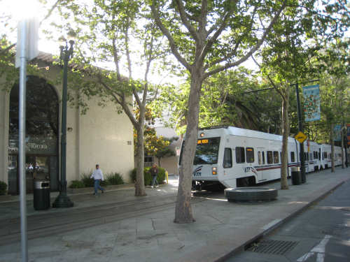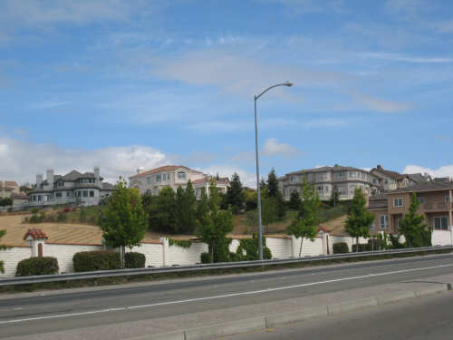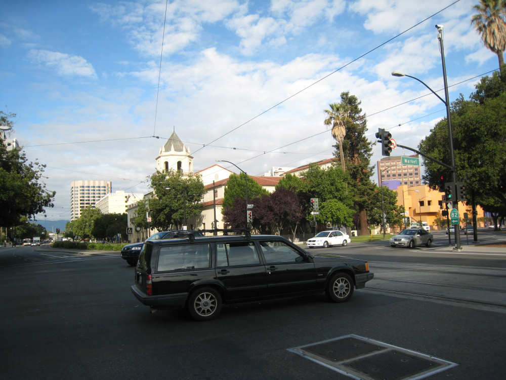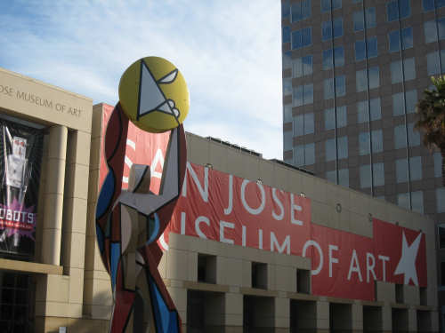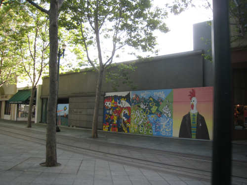 Today was a different sort of day than we've had in a while (since the Los Angeles area) - we went through cities all day long. We started in San Jose with a nice, cool, somewhat cloudy outlook and meandered over to Mission Boulevard where we were most of the day. San Jose was pretty nondescript where we spent the night and continured that way for a while, but the downtown was quite picturesque. There was a light rail system that went down the middle of the street with beautiful landscaping along it, very modern and clean looking. There were also some impressive buildings, including the San Jose Museum of Art with a very colorful statue in front of it.