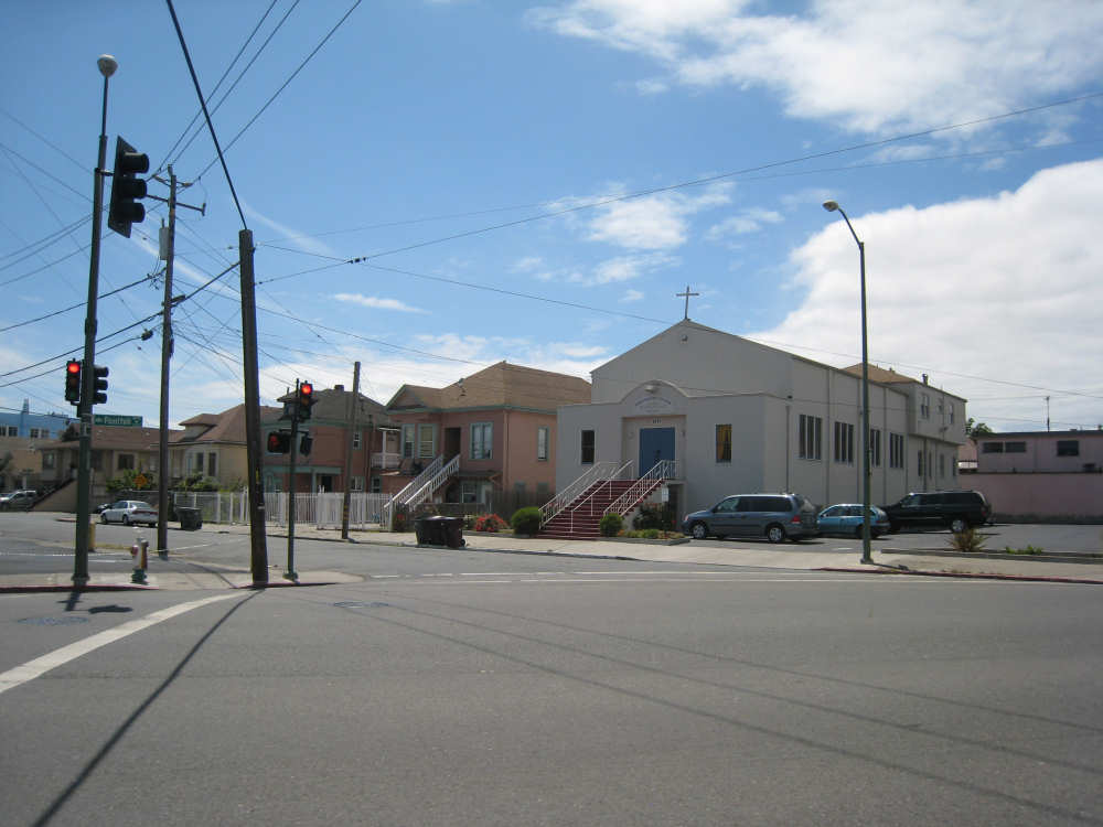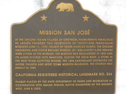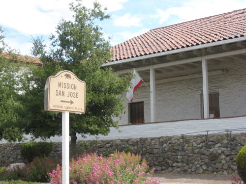 Outside of San Jose, we passed through several other towns - Milpitas, Fremont, Niles, Union City, Hayward, San Leandro, Alameda, and Oakland - before arriving at Berkeley. Most of the towns were very built up and had some lovely parts - mostly downtown - and some not so lovely ones. Between Fremont and Union City, we came to the Mission San Jose, the site of the 14th mission of the original 21 set up by the Spaniards. The original mission had been destroyed in an earthquake and rebuilt later.