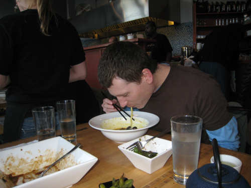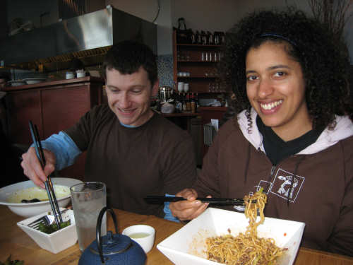 Thursday, May 29, 2008 - Rest Day in Berkeley, CA It was a sunny day in Berkeley, CA and we took to the laid-back California style like we were born to it. We did get some things done - took our bike to a shop to get new chains put on, check the brakes, all that good stuff. We also picked up some postcards and stamps, caught up on bookkeeping, and worked a little on the upcoming routes. Sari tried out Shane's favorite coffee shop (twice, just to be sure) and liked it. And we went out to eat at a noodle restaurant nearby. It is definitely a treat having everything you need within easy walking distance - that's the way life should be. Tomorrow we may venture a little farther afield. But maybe not. |