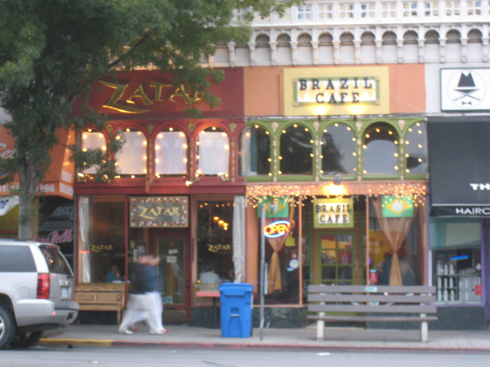 Friday, May 30, 2008 - Rest Day in Berkeley, CA We were a little more active on our second rest day. We took a walk down Alcatraz Street, so named because you can faintly see Alcatraz Island if you look straight down the street. There were several interesting buildings along the way and a little park at the interesection of Alcatraz and Adeline. Pat discovered a water fountain that looked like a statue. We didn't make it all the way to the bay - turned out to be a little farther than we thought - but we had a nice walk. When Shane came home from school (she teaches high school), she drove us up a very steep hill just behind their house to see the view of Berkeley from high up. She was disappointed because it was foggier than she thought it would be, but we thought it looked great just the same. Then we went to visit her sister, Becca, who also lives in Berkeley and was busy getting her new apartment ready to move into. Their dad, Milt, was also there helping out. Becca's new apartment is right next to the one she currently lives in, but was a good bit bigger and has a nice sun room. Shane stayed to help paint, while Pat & I went to get some dinner and walked back to Shane's place to put up today's web page. Tomorrow being Saturday, we'll being going out with Shane and Sky to do a little more sight-seeing, so we should have even more great pictures of the area tomorrow. Stay tuned! We've also put up a picture of Marieke and Jim who took us out to dinner in Alpine and hooked us up with Hank & Carolyn, the tandem couple who led us to the beach in San Diego for our wheel-dipping in the Pacific. Since we didn't think to get a picture of Marieke and Jim when we went out to dinner, we asked them to send us one and we're finally getting around to putting it up. |