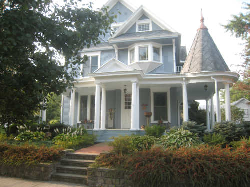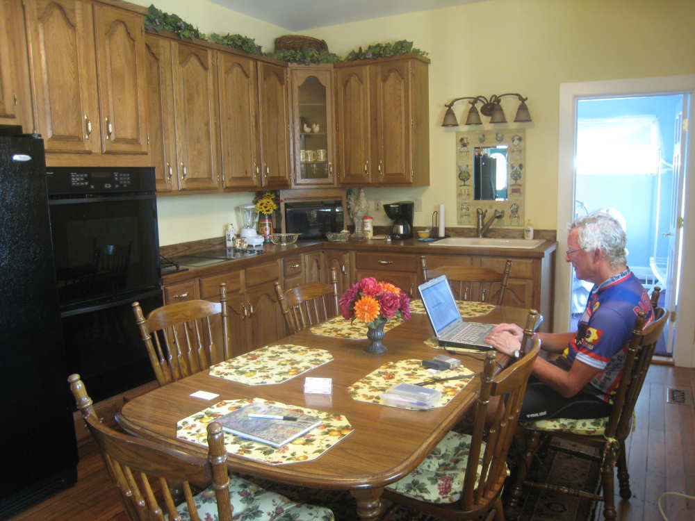 Thursday, September 04, 2008 We continued our trek across Ohio, still on US 224 most of the day. The day was hot and humid, not quite as bad as yesterday, without much wind which was good because we had more climbing today - nothing too serious except for one short hill in Lodi that was 8% for a short while. Like I said yesterday, Ohio is getting us warmed up for the real hills. We're down to single-digit (9) riding days left and less than 500 miles (about 420) to go! We left this morning at about 7:30 again and also arrived in Medina about the same time as yesterday (2:45), having gone 49-1/4 miles in a bit under 5 bike hours. US 224 was rough and patchy in spots and nice and smooth in others. We ran into some long stretches of road construction; not much was being done in either case but they had orange cones lined up along the center line which made it harder for people to pass us. We had to pull off a number of times to let trucks go by. The parts that had just been finished were very nice indeed, and the other parts definitely needed redoing, especially the shoulders. We went through a number of small towns again today. The first one, Greenwich, was particularly nice and quaint. We stopped here for a snack even though it was only about 11 miles out, since we weren't sure we'd find much of a lunch spot later on. We ended up having a huge strawberry shortcake with ice cream (we weren't expecting it to be so big) that was absolutely fabulous. The people at the table next to us thought it looked like a great breakfast! There were many lovely houses along the road; it always seems strange to me that such nice houses would be lining such a busy street as 224, but of course when they were built, the road wouldn't have had so much traffic. We were right about the lunch-time spots - the two that we had identified as likely candidates, based on when we would reach them, didn't have much. We stopped at a little ice cream place in Sullivan, the second one, and had some sandwiches though. We probably should have waited until we got to Lodi, the next town, which was a good deal bigger and had a lot to offer. Medina didn't seem like much when we first got to it, but our bed & breakfast is in a very nice area. Our bed & breakfast itself is terrific - a beautifully restored Victorian that's part of a triplex, two houses with a carriage house between them. The owner uses one house as the B&B, has an art gallery in the other house, and an insurance business in the carriage house. Besides the towns, we passed through the typical Ohio scenery - old farms and crop fields, grassy/flowered fields, some lakes and wetlands, and of course, the rolling hills. All very idyllic and pleasant to bike through. Tomorrow night we'll be camping - quite a change from tonight's luxury! We don't know how the phone/internet reception is there, and even if we have access, it may be more difficult to work on our page, especially if it's raining as predicted (we're really hoping it'll change its mind!). So there may be some delay in our posting; we'll do what we can and catch up the next night if we need to. |